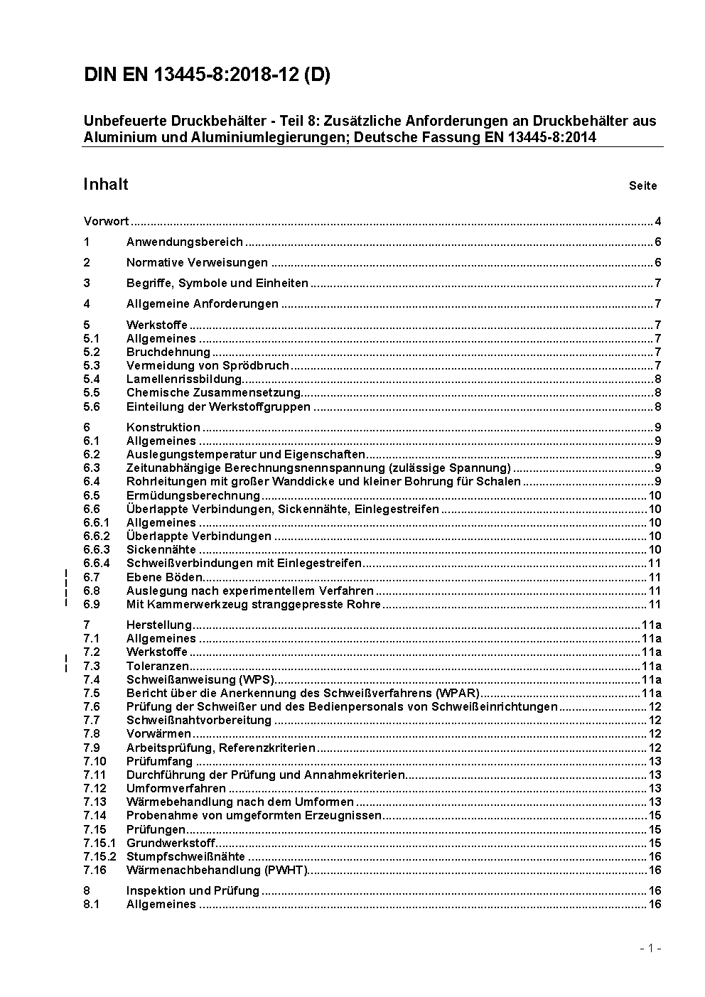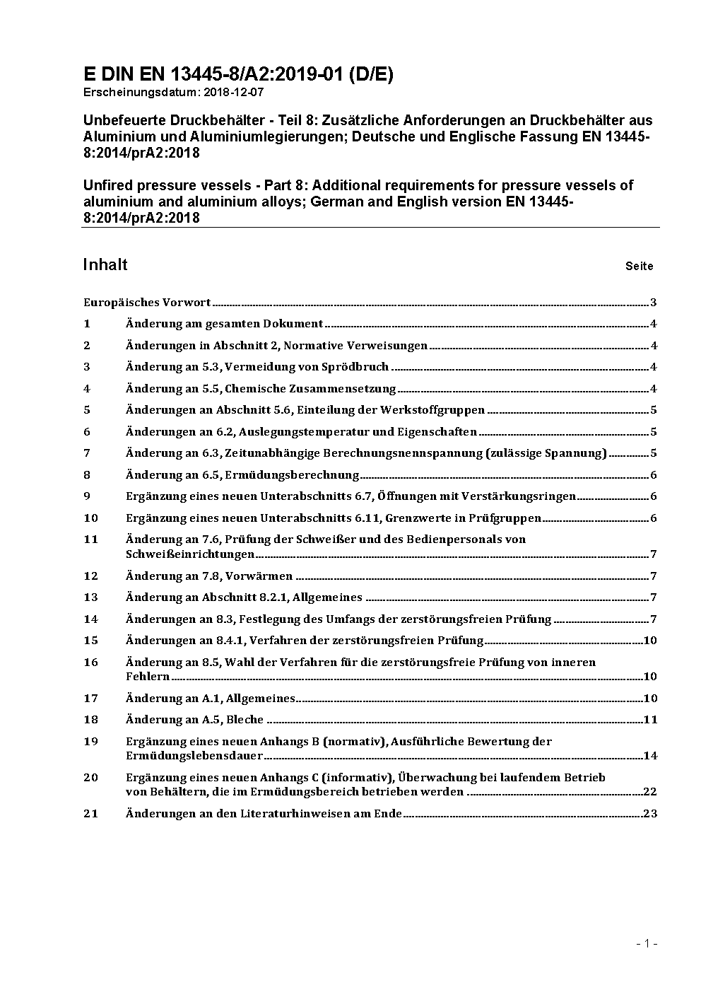 Unbefeuerte Druckbehälter - Teil 8: Zusätzliche Anforderungen an Druckbehälter aus Aluminium und Aluminiumlegierungen; Deutsche Fassung prEN 13445-8:2003