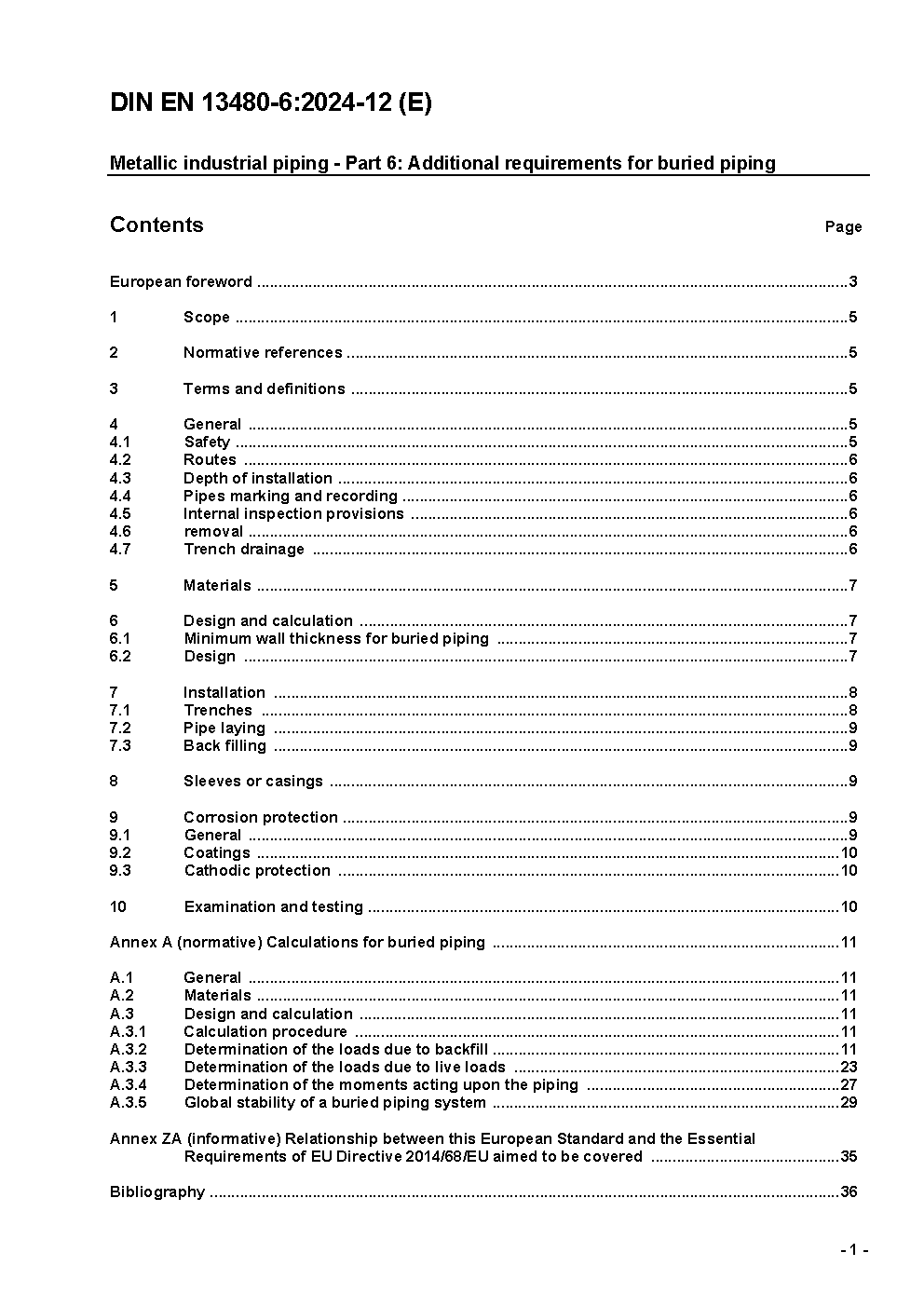 This European Standard specifies requirements for industrial piping either totally buried or partly buried and partly run in sleeves or similar protection. It is used in conjunction with the other six parts of EN 13480.