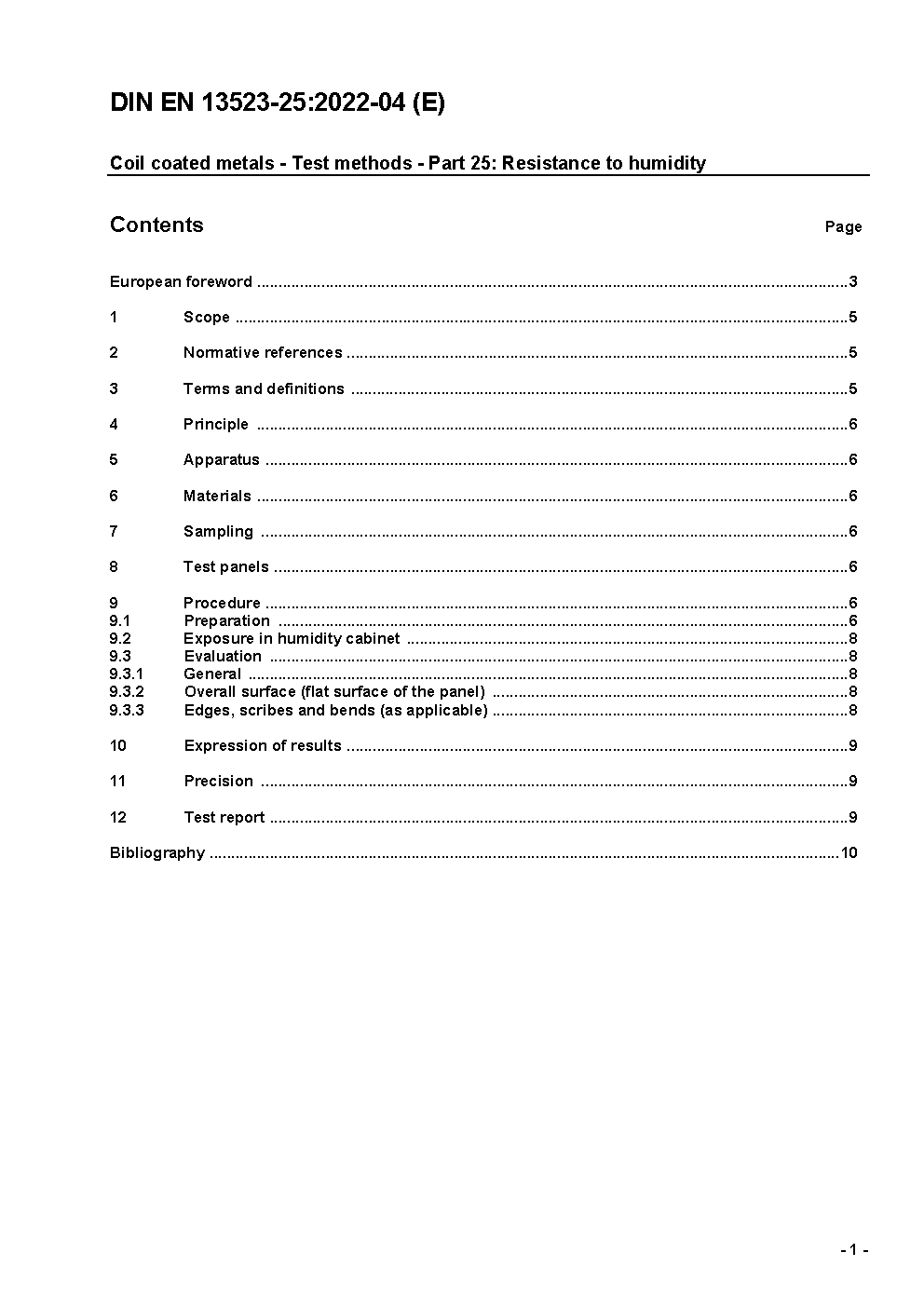 Coil coated metals - Test methods - Part 25: Resistance to humidity; German version EN 13523-25:2006
