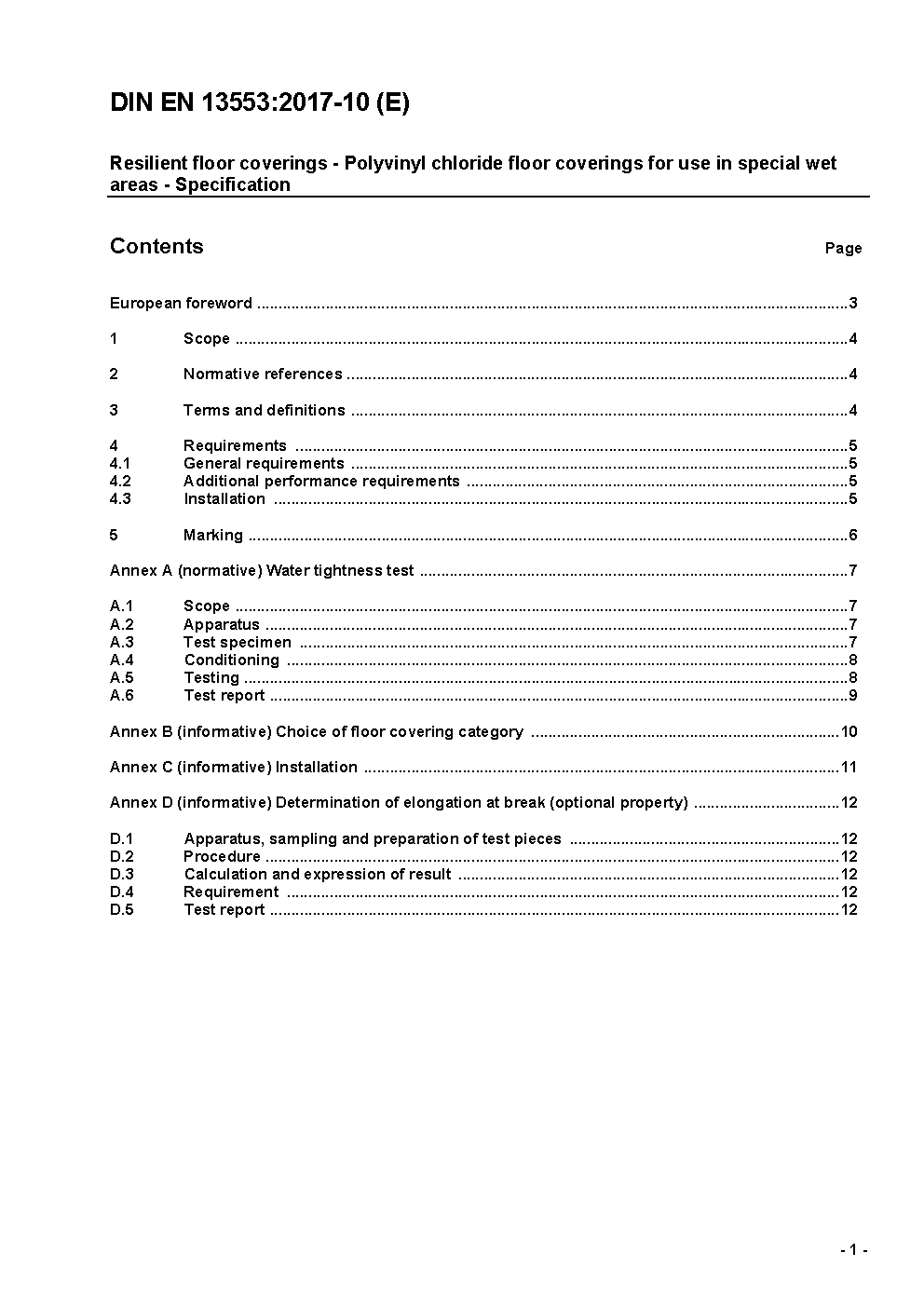 Resilient floor coverings - Polyvinyl chloride floor coverings for use in special wet areas - Specification; German version EN 13553:2002
