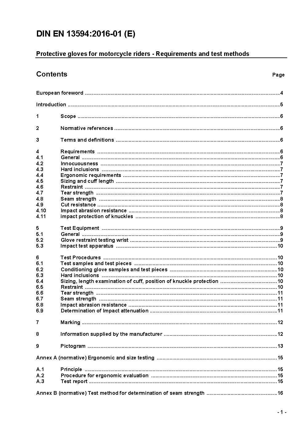 Protective gloves for motorcycle riders - Requirements and test methods; German version EN 13594:2015