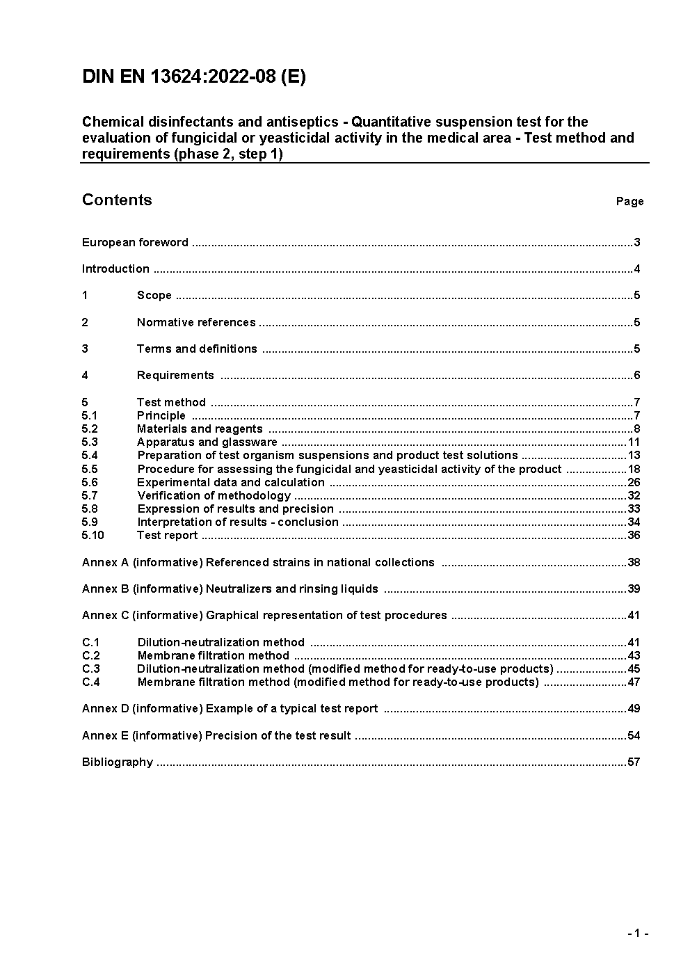 Chemische Desinfektionsmittel und Antiseptika - Quantitativer Suspensionsversuch zur Bestimmung der fungiziden oder levuroziden Wirkung im humanmedizinischen Bereich - Prüfverfahren und Anforderungen (Phase 2, Stufe 1); Deutsche Fassung EN 13624:2021