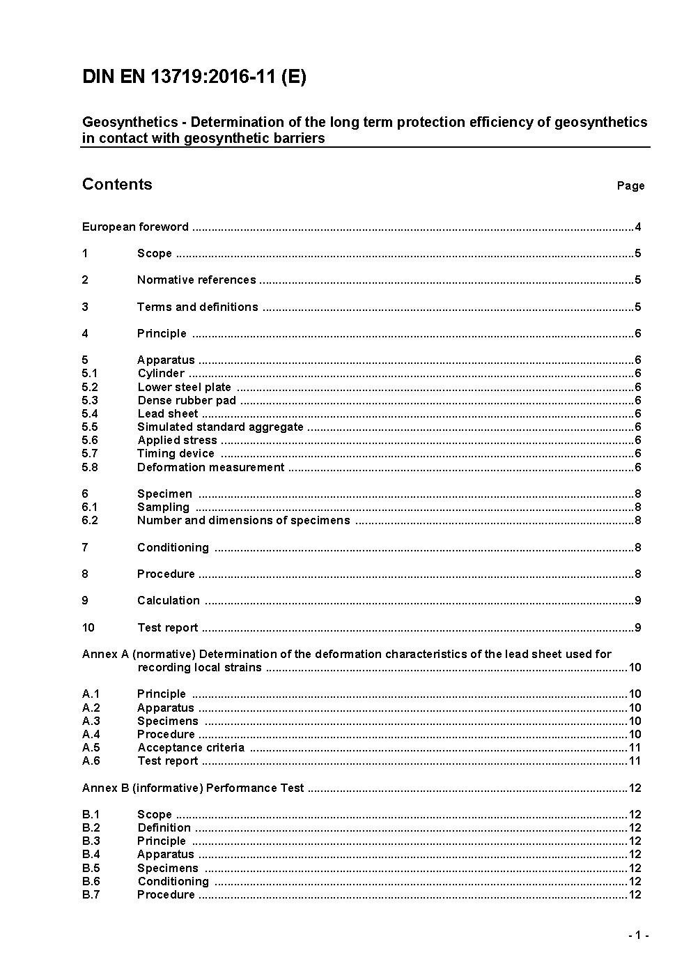 This European Standard is an index test used to determine the efficiency with which a geotextile or geotextile related product will protect a geosynthetic barrier or other contact surface against the mechanical long term effects of static point loads.