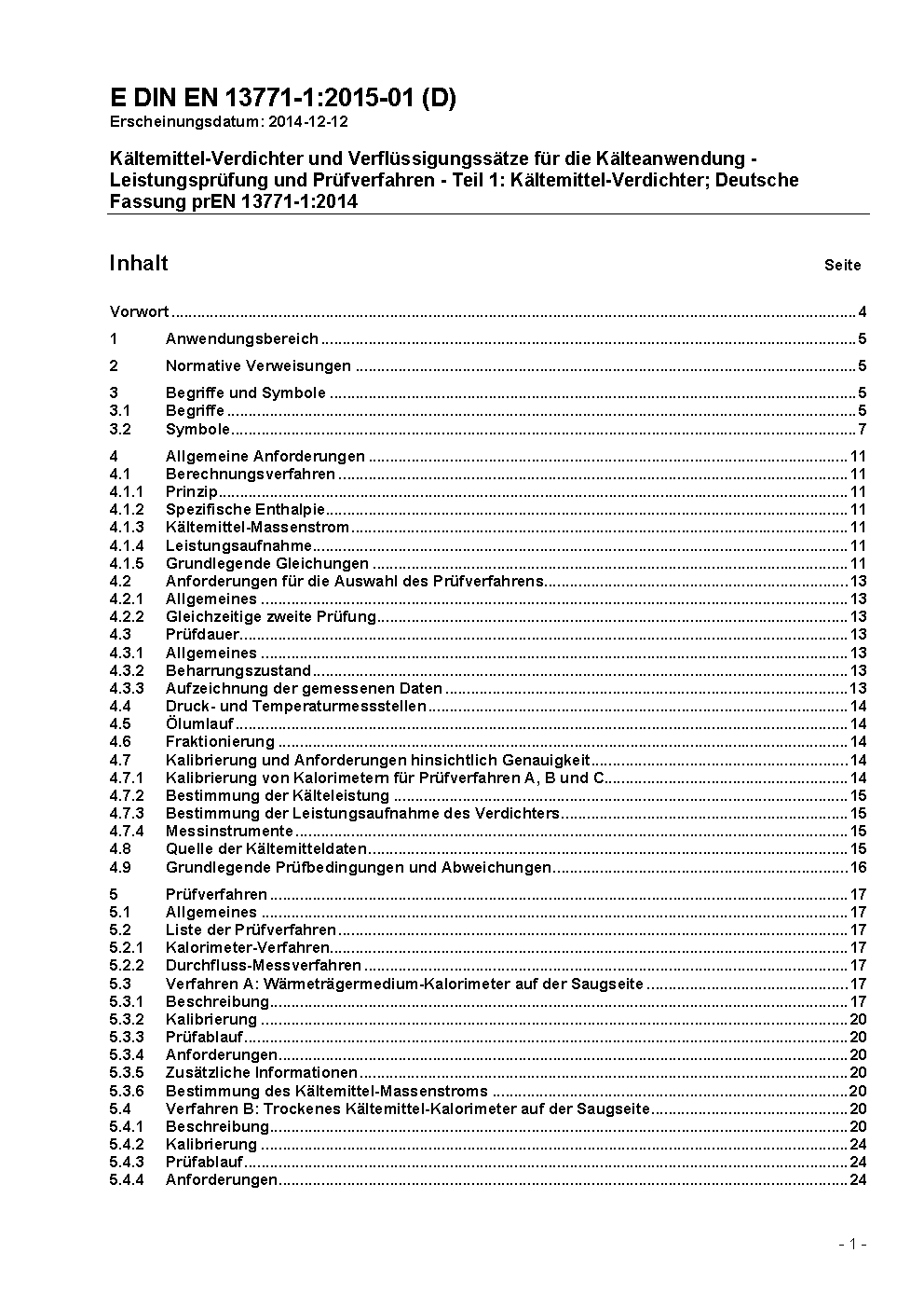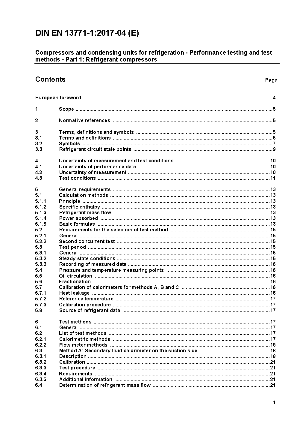 Compressors and condensing units for refrigeration - Performance testing and test methods - Part 1: Refrigerant compressors; German version EN 13771-1:2016
