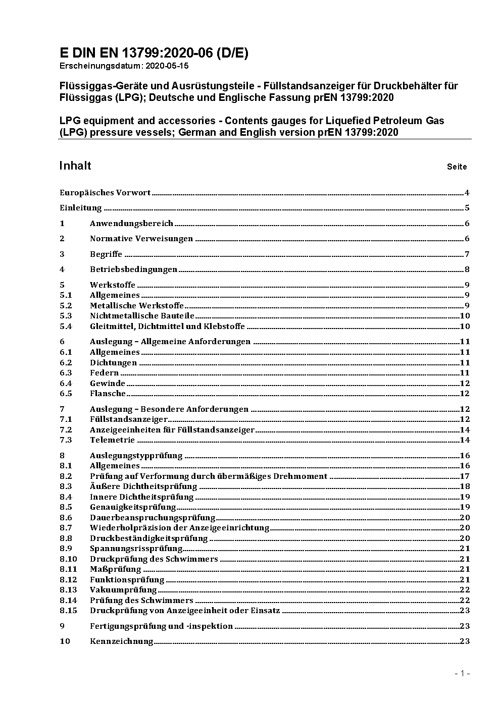 LPG equipment and accessories - Contents gauges for Liquefied Petroleum Gas (LPG) pressure vessels; German version EN 13799:2012