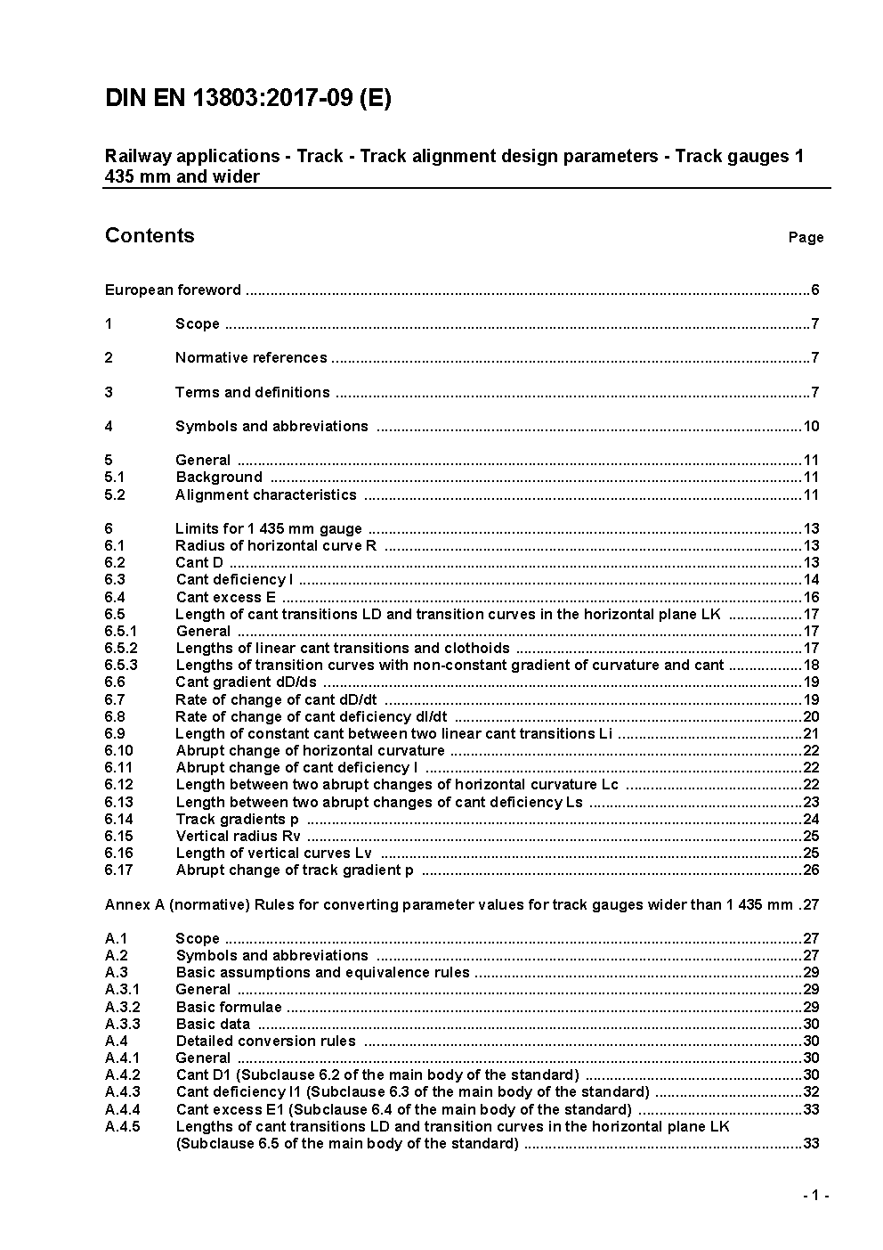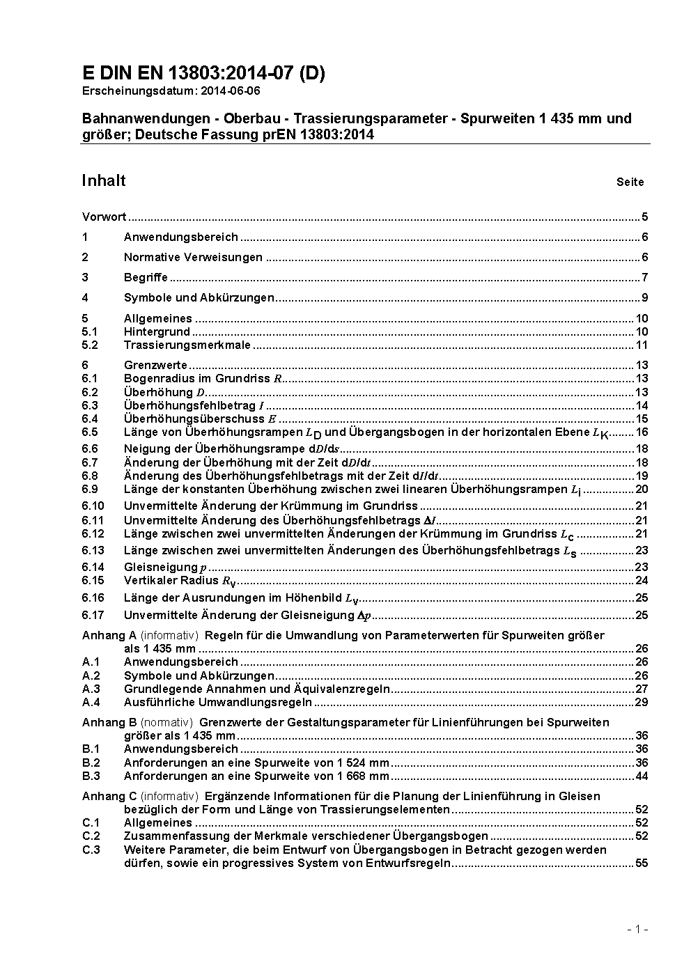 Railway applications - Track - Track alignment design parameters - Track gauges 1435 mm and wider; German version prEN 13803:2014
