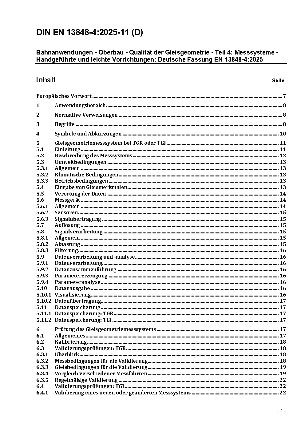 Railway applications - Track - Track geometry quality - Part 4: Measuring systems - Manual and lightweight devices; German version EN 13848-4:2011