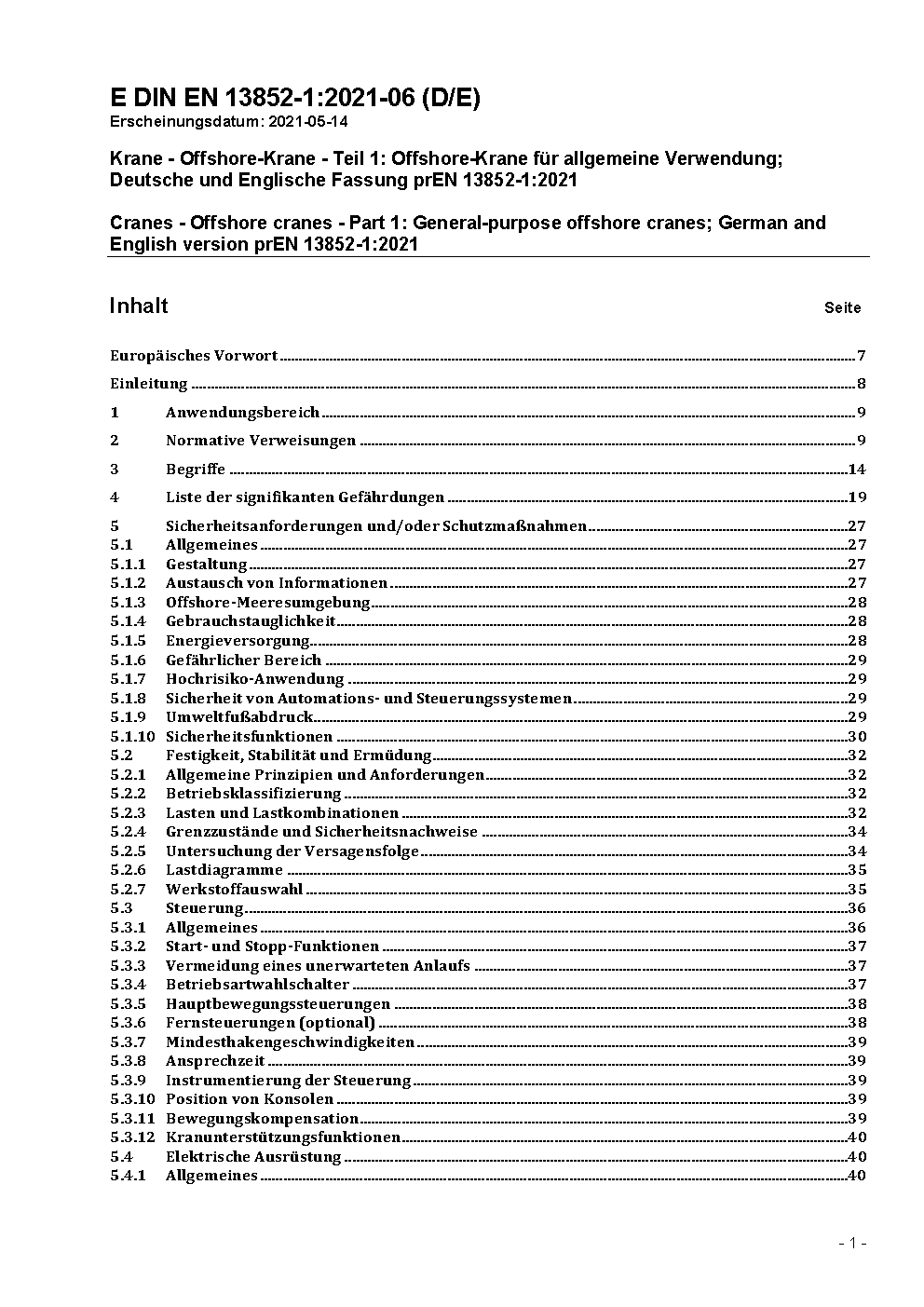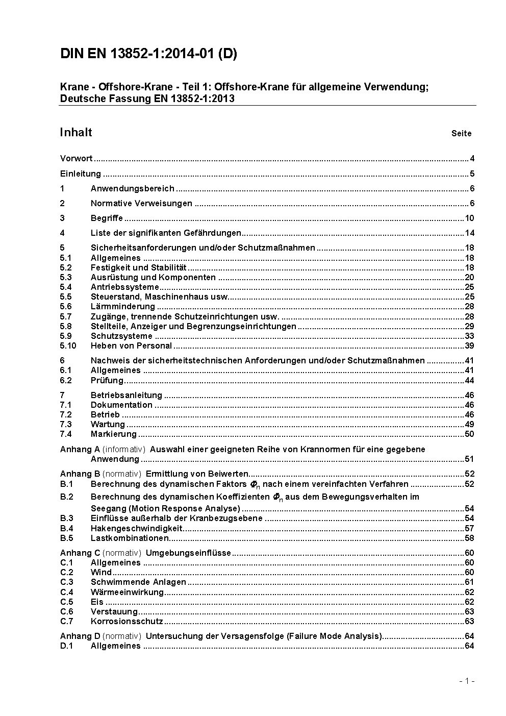 Krane - Offshore-Krane - Teil 1: Offshore-Krane für allgemeine Verwendung; Deutsche Fassung EN 13852-1:2013