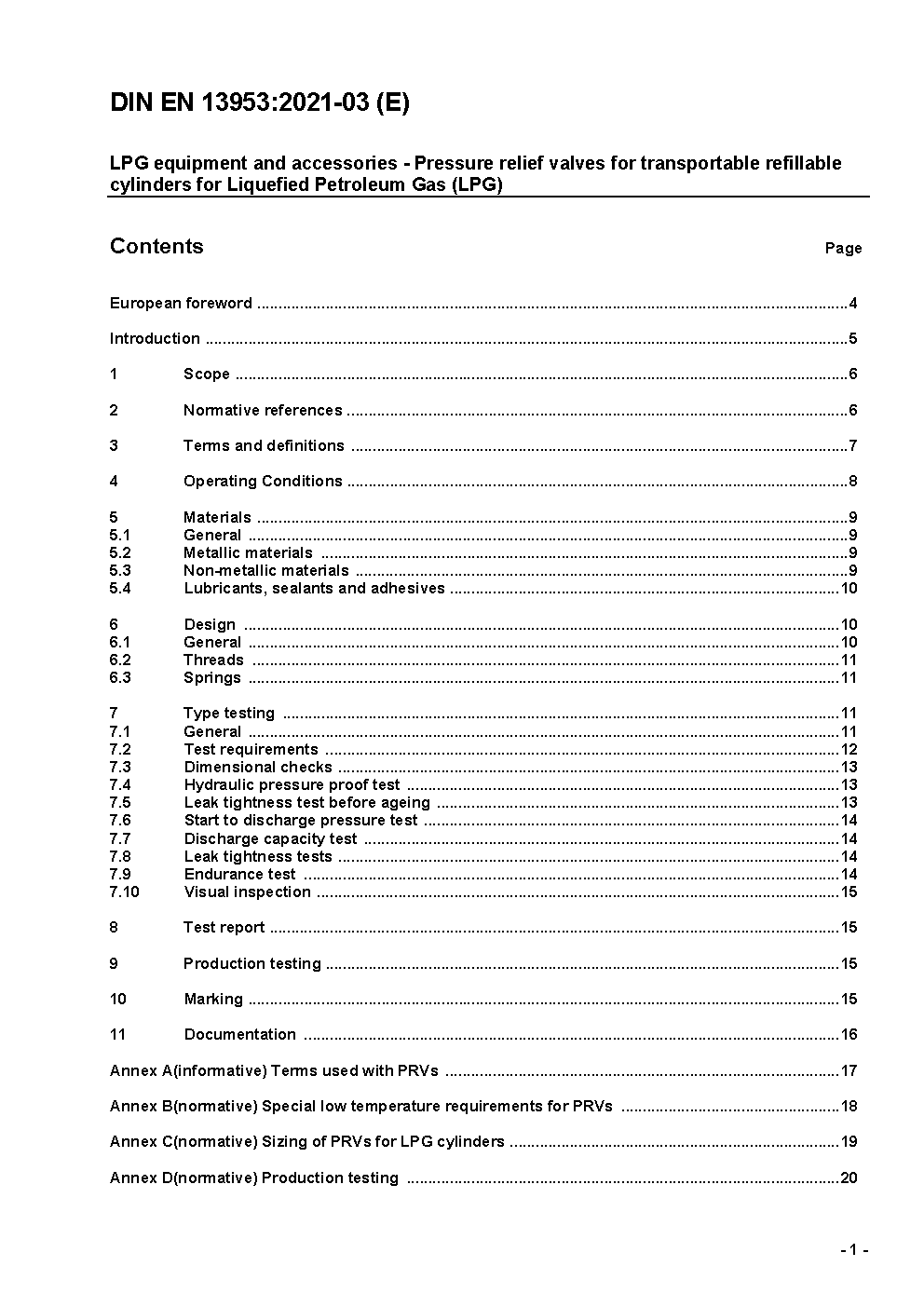 LPG equipment and accessories - Pressure relief valves for transportable refillable cylinders for Liquefied Petroleum Gas (LPG); German and English version prEN 13953:2025