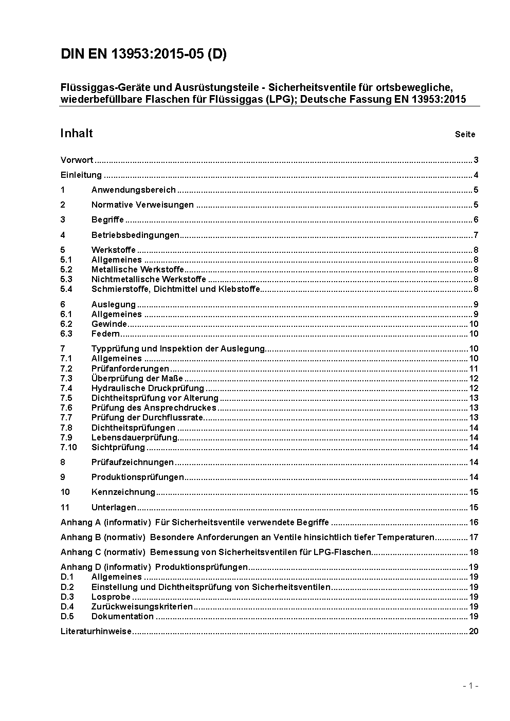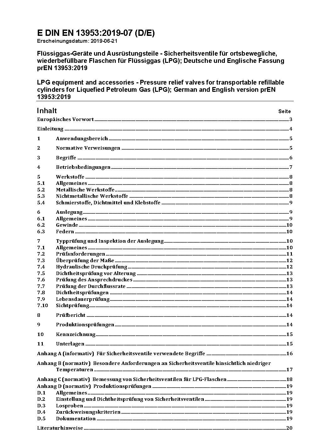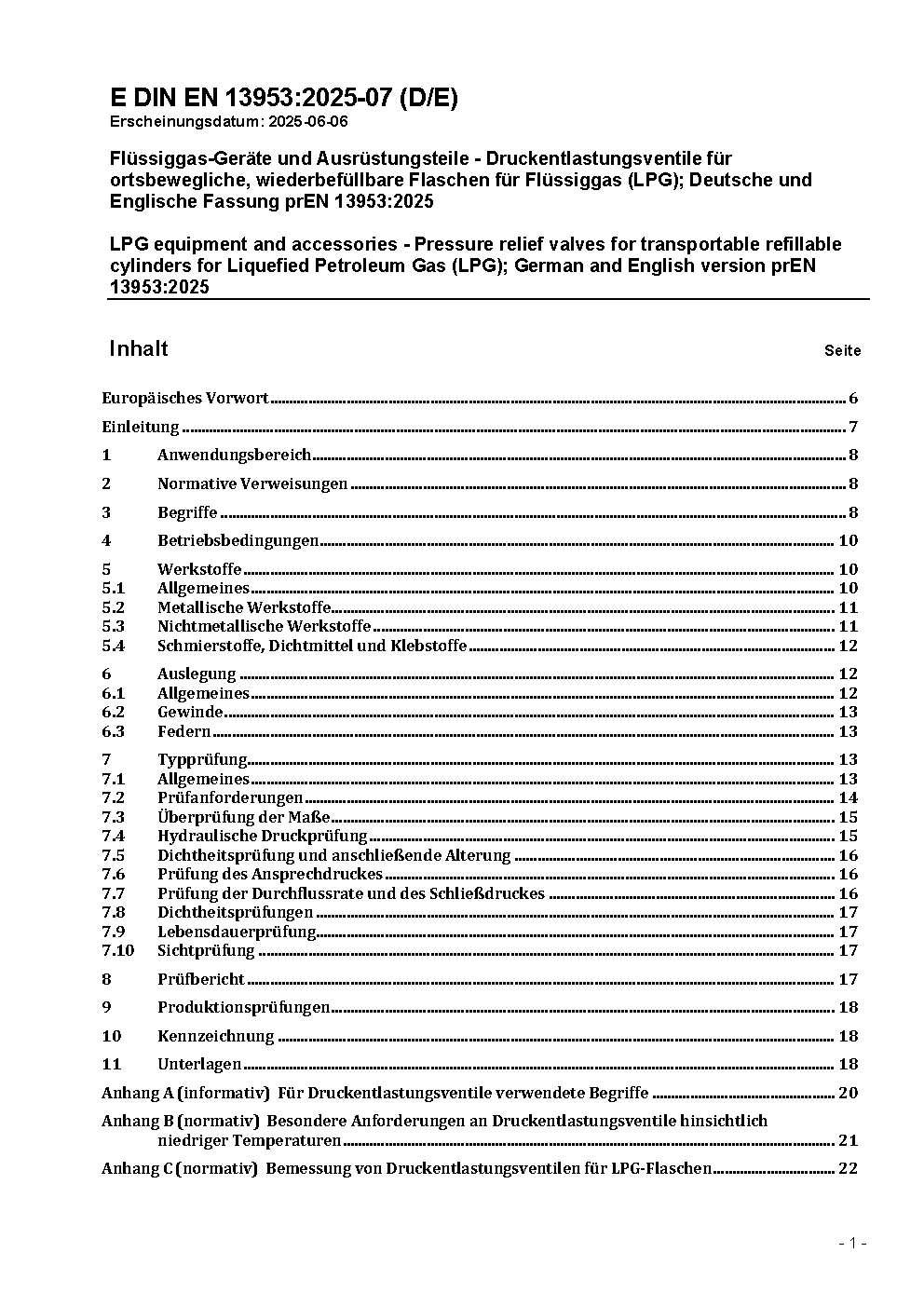 Flüssiggas-Geräte und Ausrüstungsteile - Druckentlastungsventile für ortsbewegliche, wiederbefüllbare Flaschen für Flüssiggas (LPG); Deutsche und Englische Fassung prEN 13953:2025