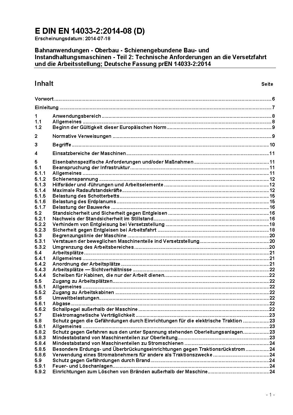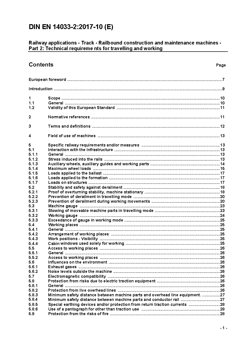 Railway applications - Track - Railbound construction and maintenance machines - Part 2: Technical requirements for working; German version EN 14033-2:2008+A1:2011