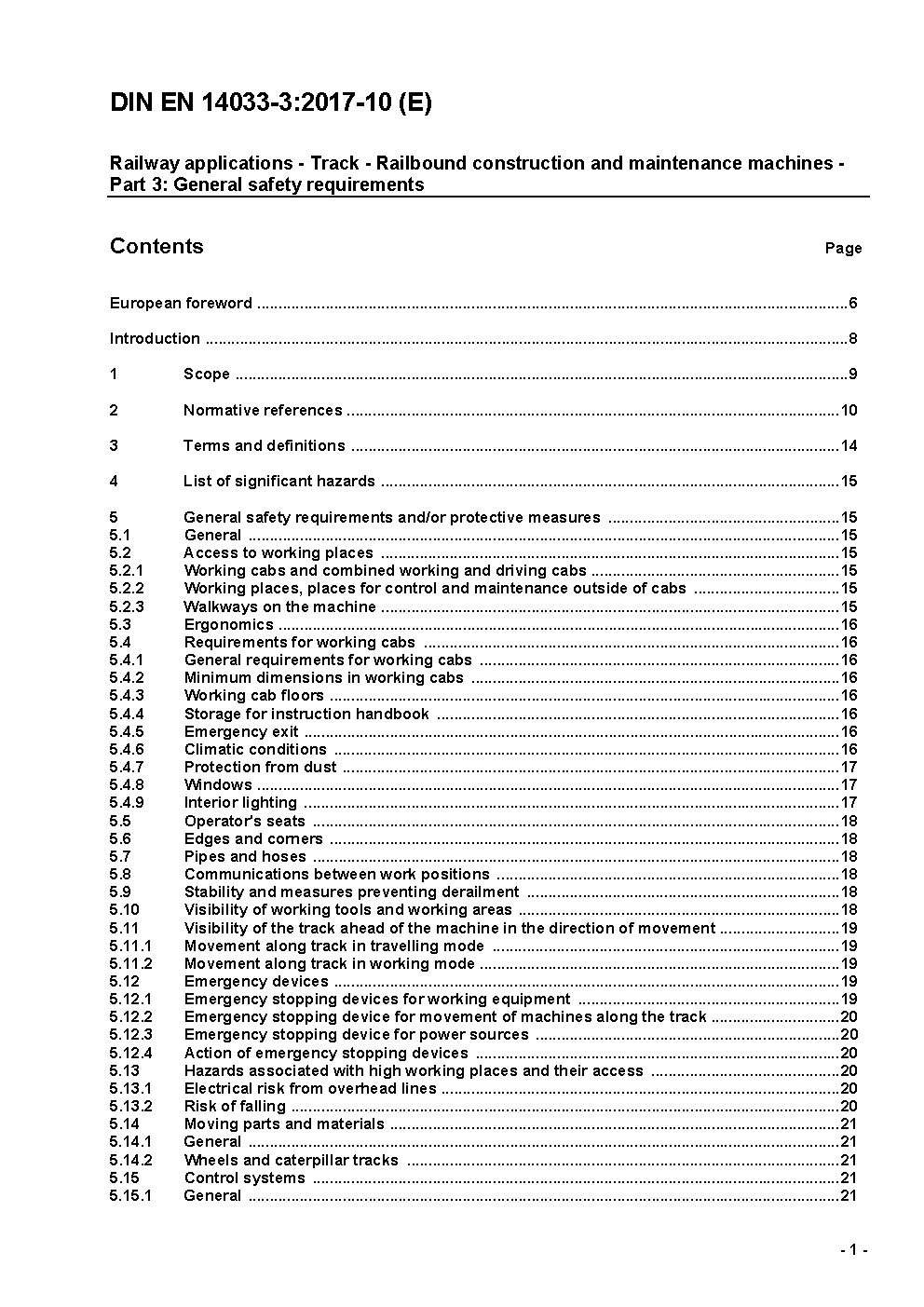Railway applications - Track - Railbound construction and maintenance machines - Part 3: General safety requirements; German version EN 14033-3:2017