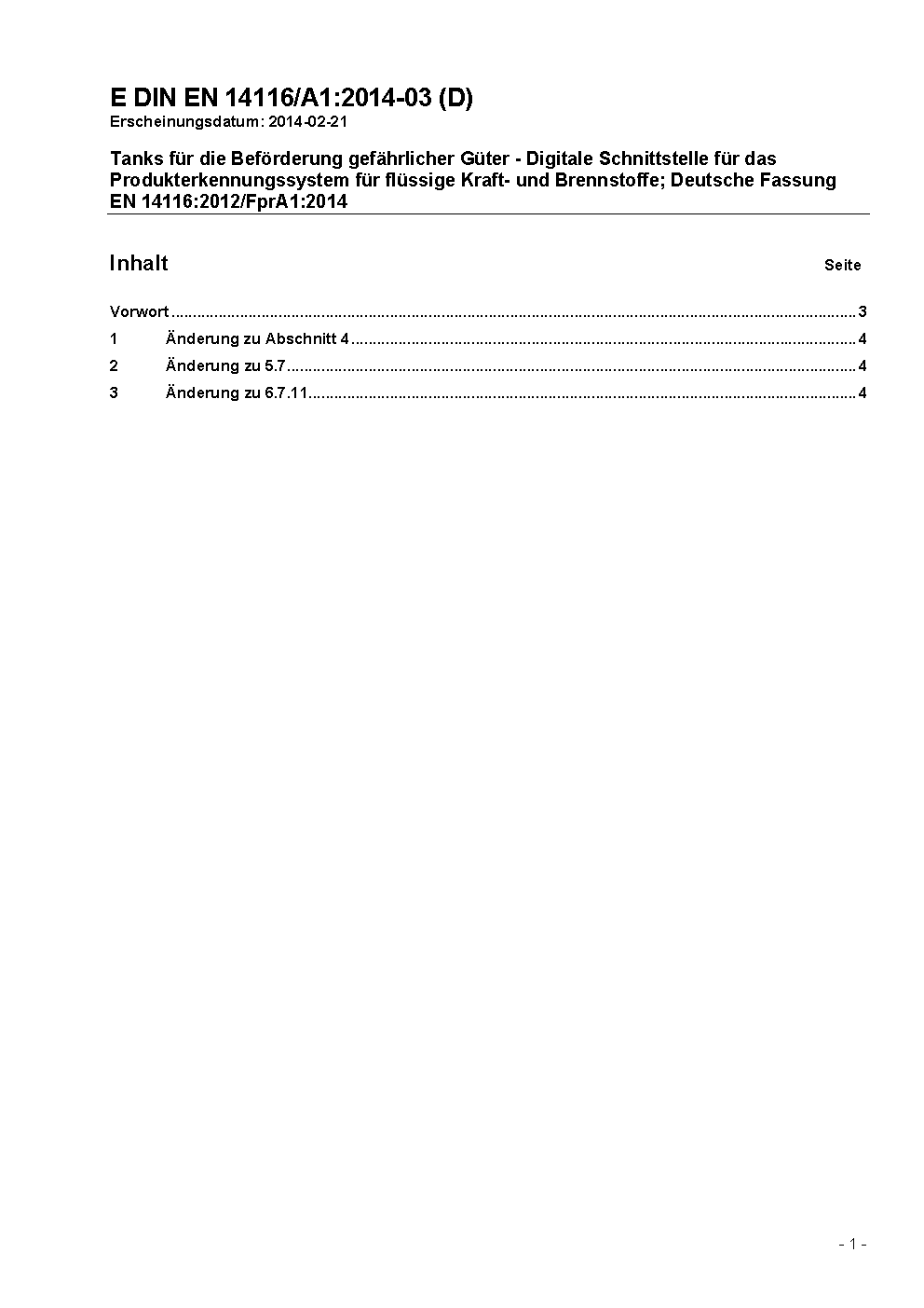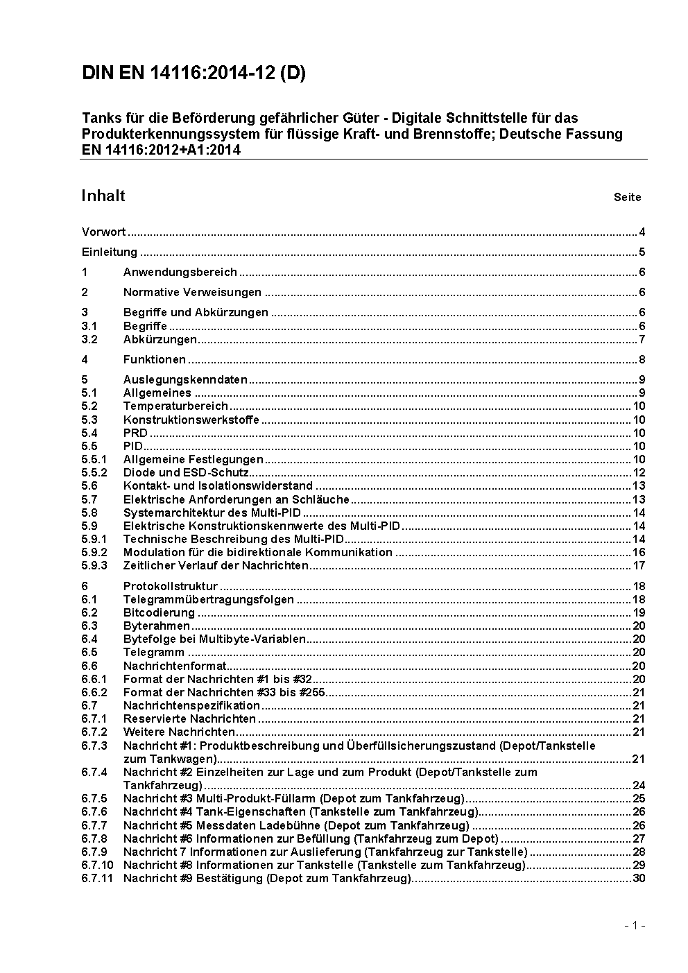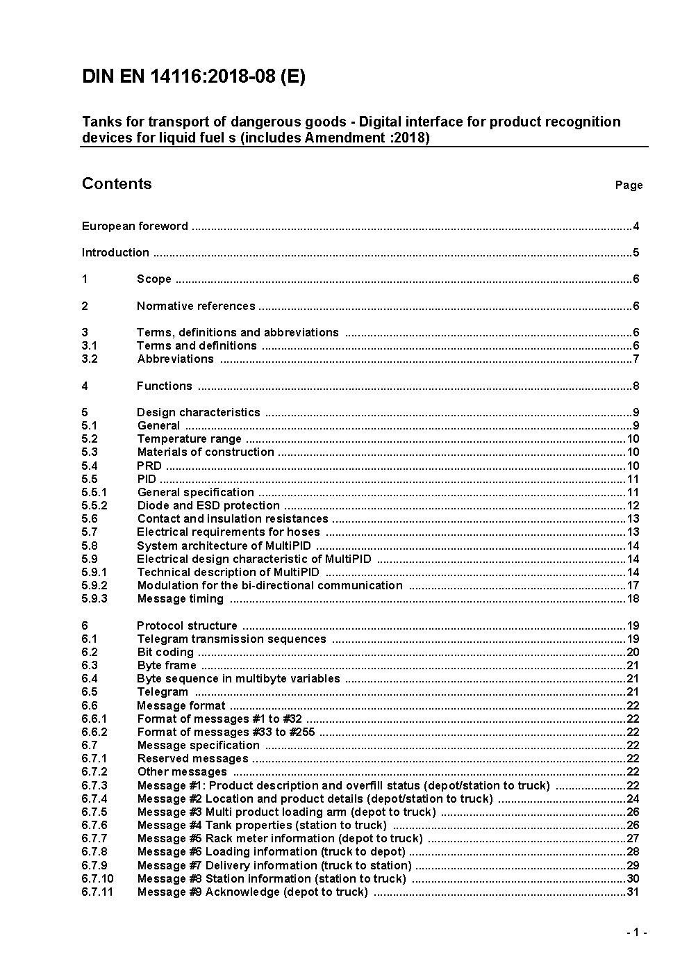 Tanks for transport of dangerous goods - Digital interface for product recognition devices for liquid fuels; German version EN 14116:2012