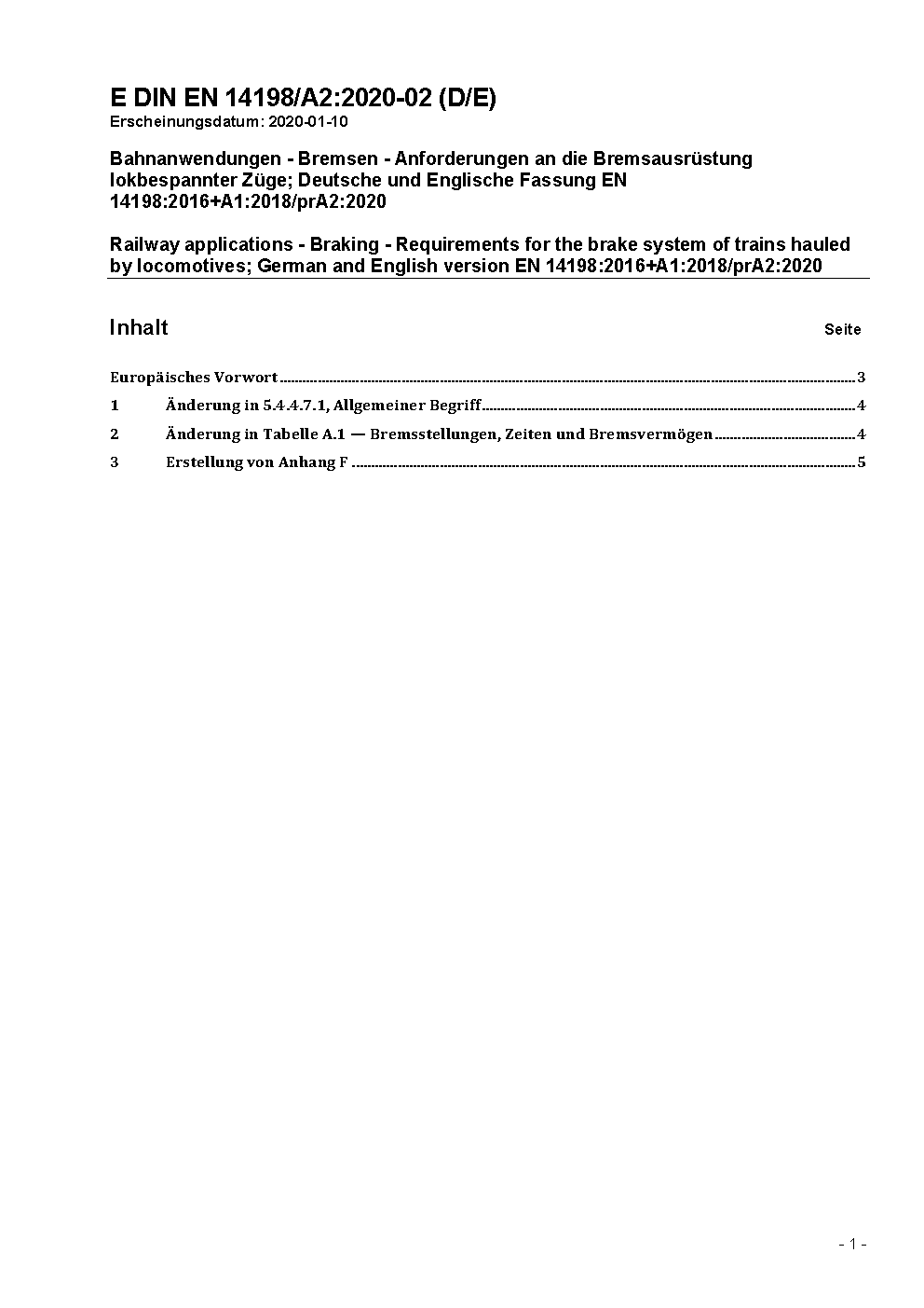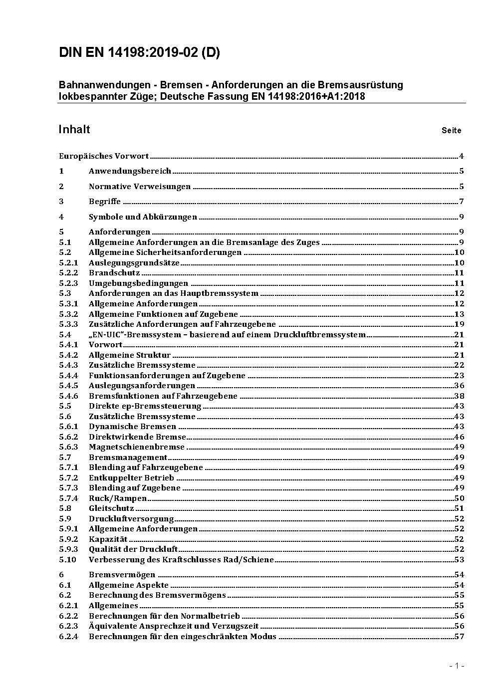 Railway applications - Braking - Requirements for the brake system of trains hauled by locomotives; German version EN 14198:2016