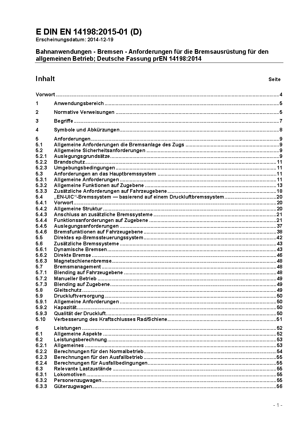 This European Standard specifies basic requirements for the braking of trains hauled by locomotives: - for trains hauled by locomotives and intended for use in general operation each vehicle is fitted with the traditional brake system with a brake pipe compatible with the UIC brake system; - for trains hauled by locomotives and intended for use in fixed or predefined formation, the requirements on the vehicle and the train are necessary. In the case of a UIC brake system, this standard applies; if not, the EN 16185 series or the EN 15734 series applies. If concerned, the UIC brake architecture described in this standard (see 5.4) can be used for brakes for multiple unit train and high speed trains and urban rail described in the EN 13452 series, the EN 16185 series and the EN 15734 series. This European Standard also takes into account electrical and electronic control functions and additional brake systems like dynamic brakes and adhesion independent brakes. The brake system requirements, which are specific for on-track machines are set out in EN 14033-1. This European Standard does not apply to Urban Rail rolling stock braking system, which is specified by EN 13452-1.