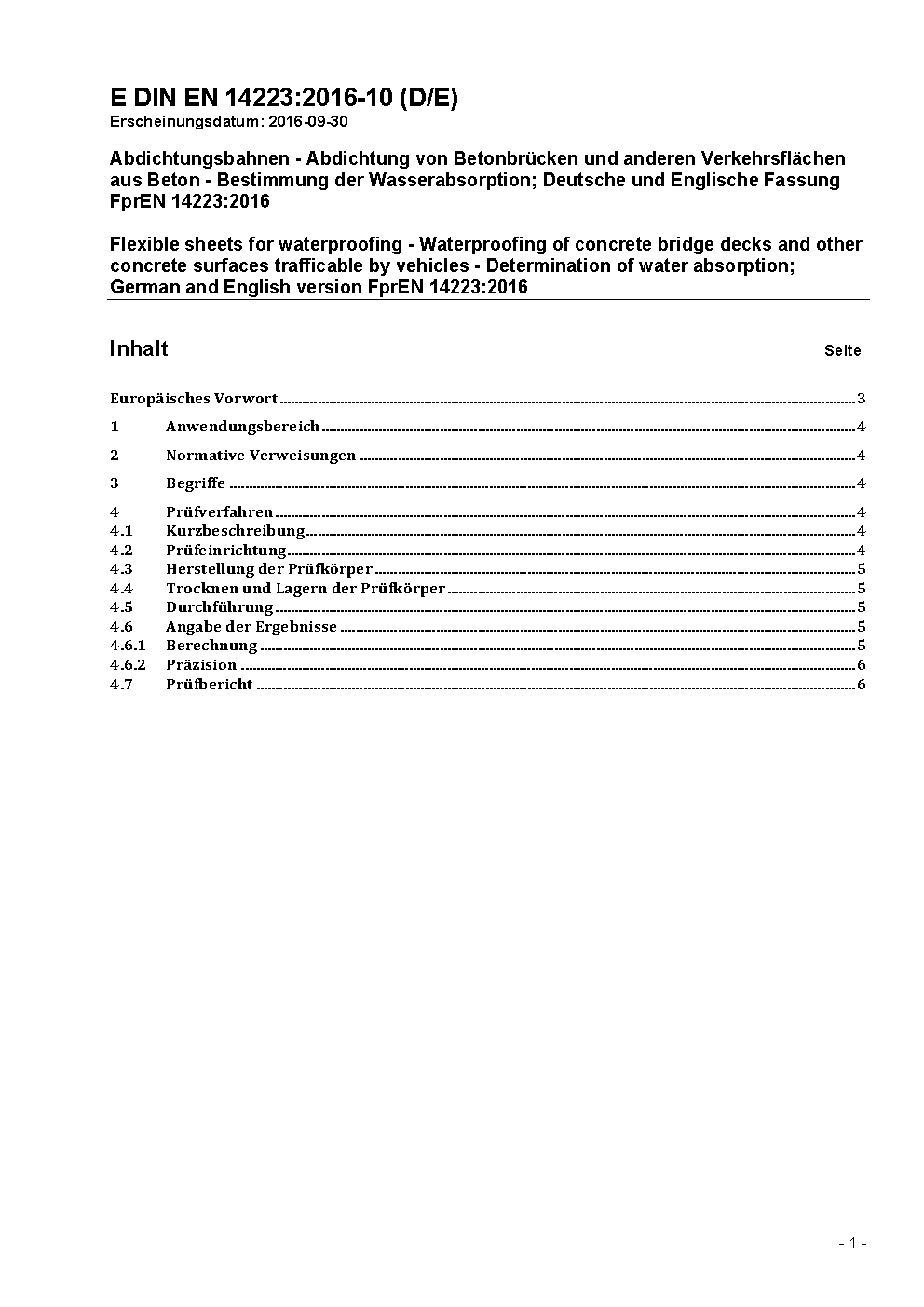 Flexible sheets for waterproofing - Waterproofing of concrete bridge decks and other concrete surfaces trafficable by vehicles - Determination of water absorption; German version EN 14223:2005