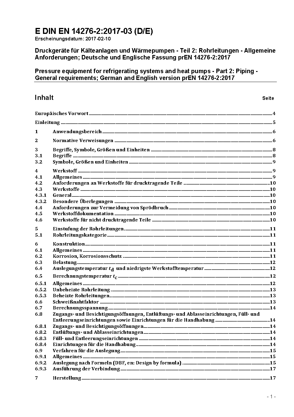 Pressure equipment for refrigerating systems and heat pumps - Part 2: Piping - General requirements; German and English version EN 14276-2:2020/prA1:2023