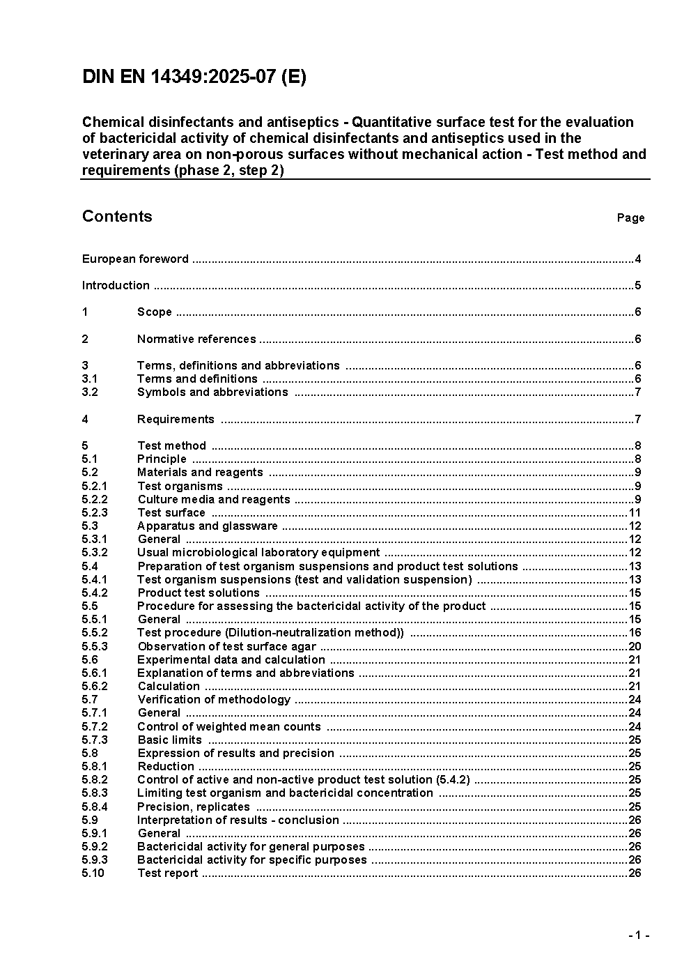 Chemische Desinfektionsmittel und Antiseptika - Quantitativer Oberflächenversuch zur Bestimmung der bakteriziden Wirkung chemischer Desinfektionsmittel und Antiseptika für den Veterinärbereich auf nicht-porösen Oberflächen ohne mechanische Wirkung - Prüfverfahren und Anforderungen (Phase 2/Stufe 2); Deutsche Fassung EN 14349:2004