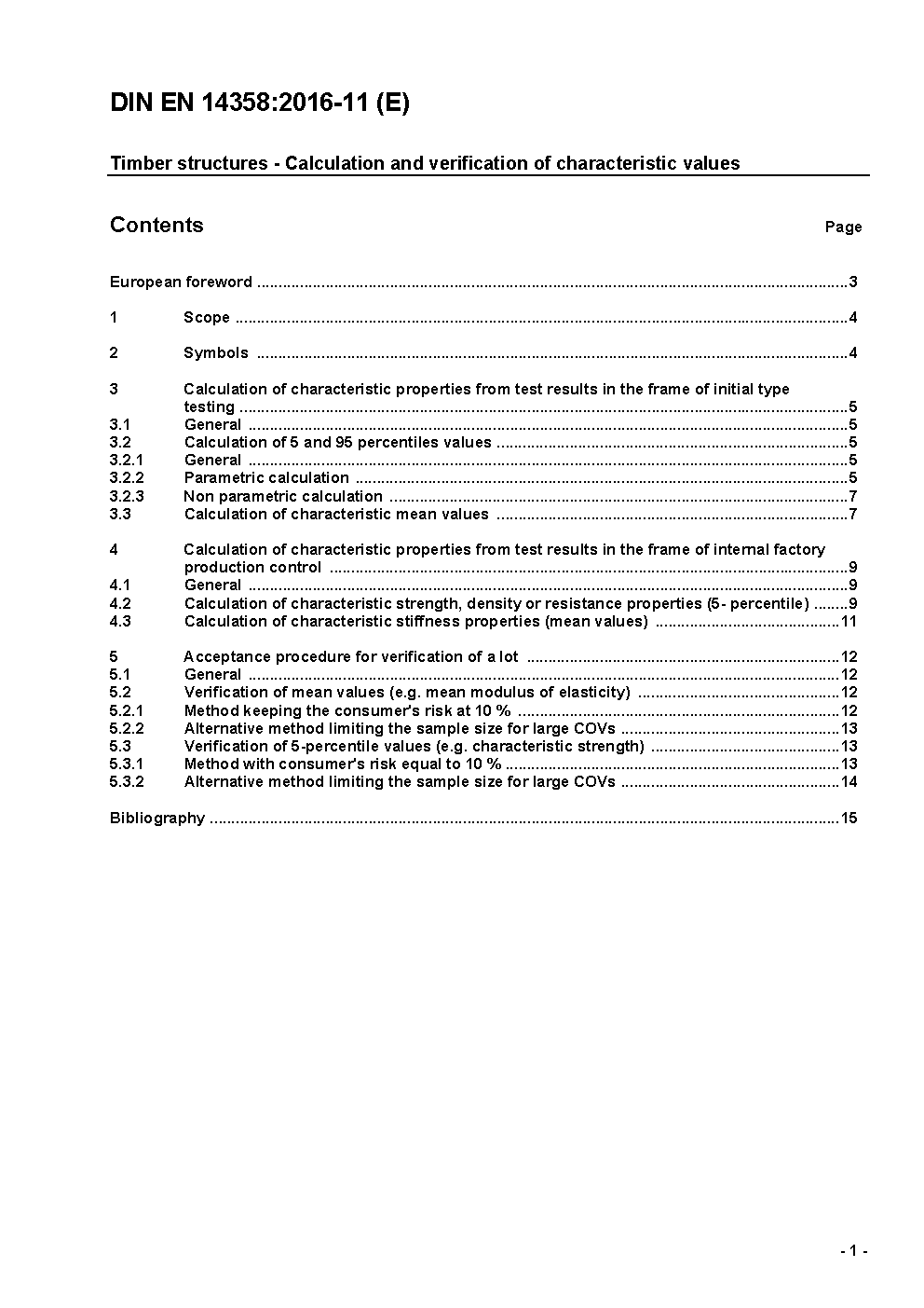 Timber structures - Calculation of characteristic 5-percentile values and acceptance criteria for a sample; German version EN 14358:2006