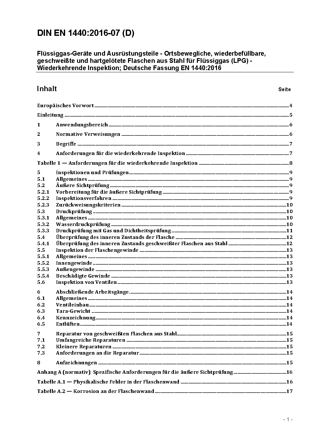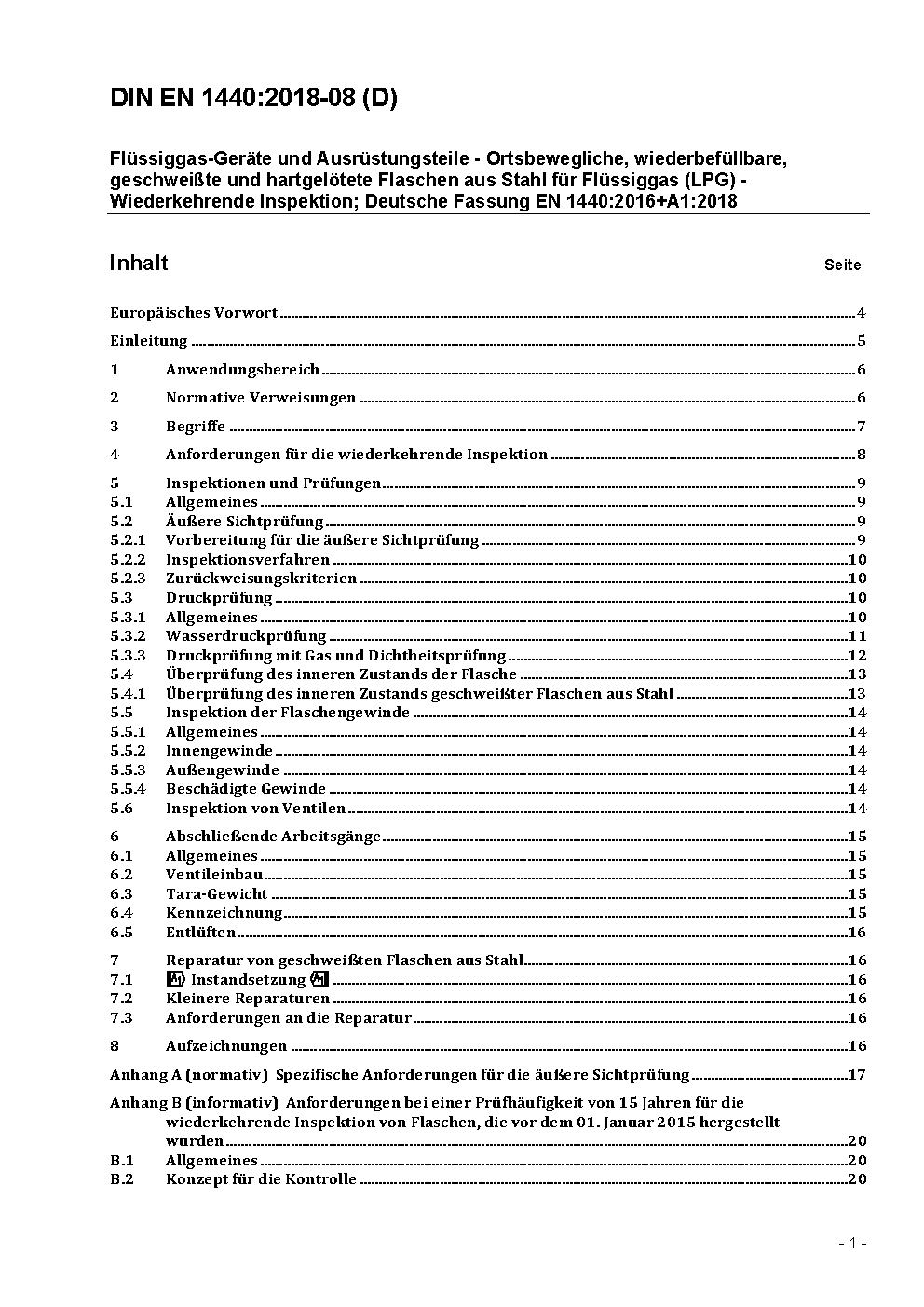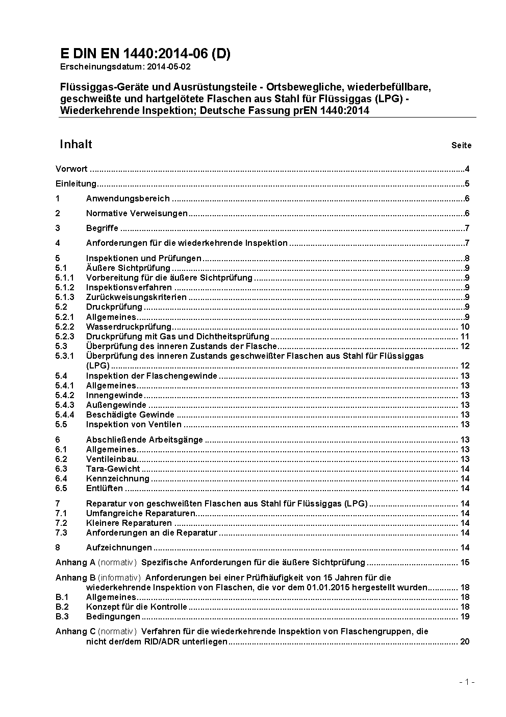 LPG equipment and accessories - Periodic inspection of transportable refillable LPG cylinders; German version EN 1440:2008+A1:2012