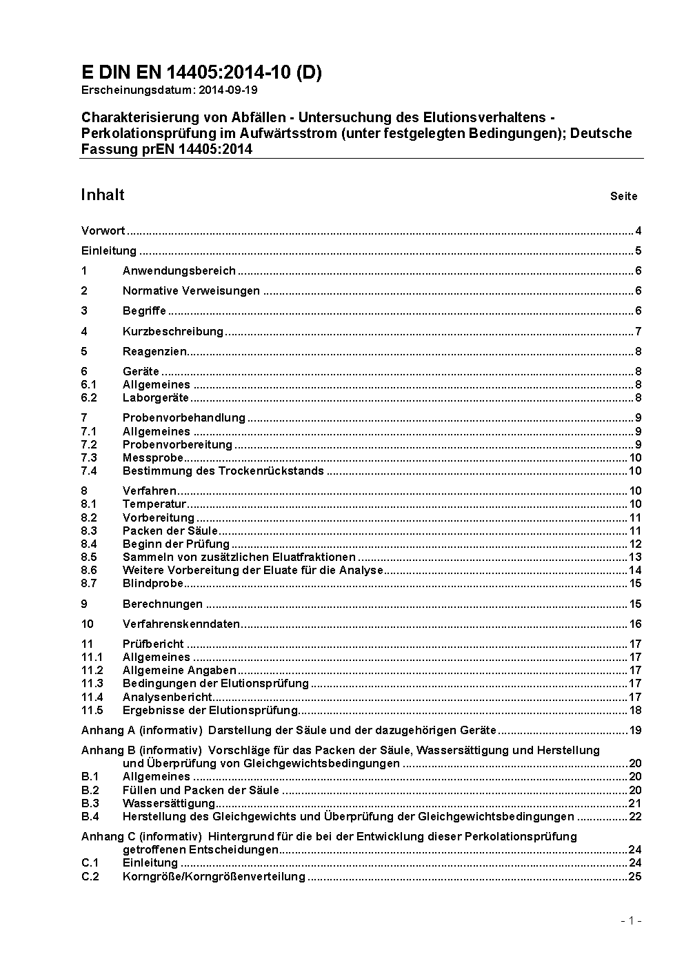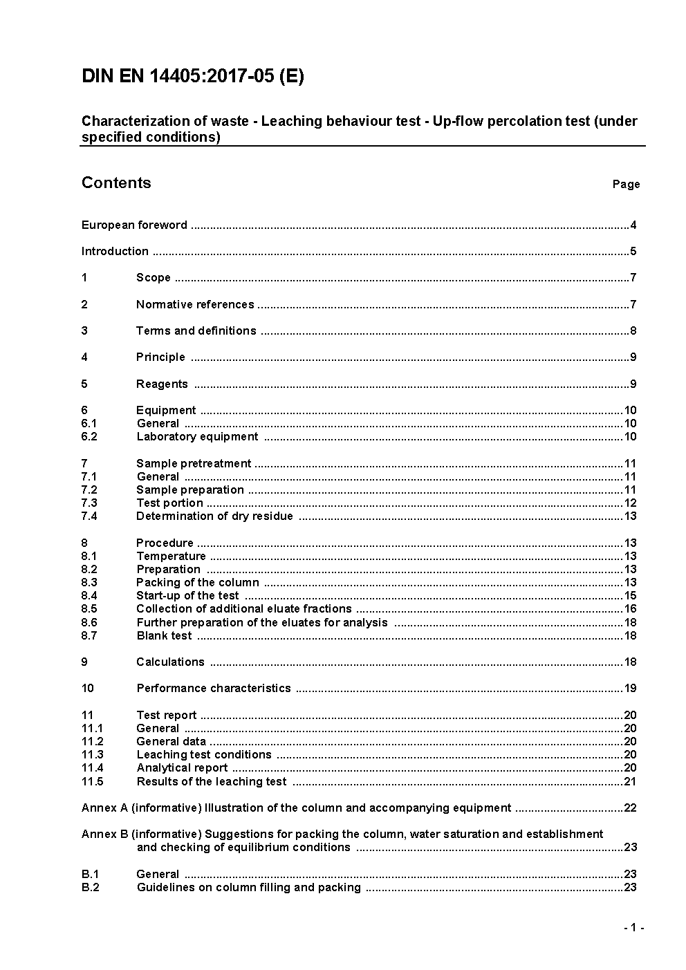 Characterization of waste - Leaching behaviour test - Up-flow percolation test (under specified conditions); German version EN 14405:2017