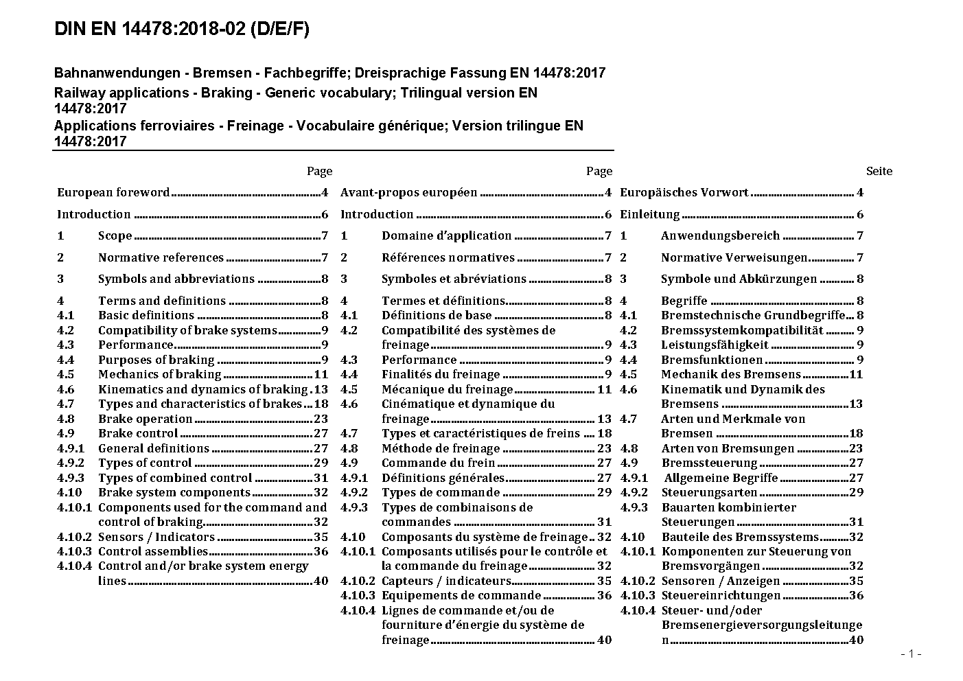 Railway applications - Braking - Generic vocabulary; Trilingual version EN 14478:2017