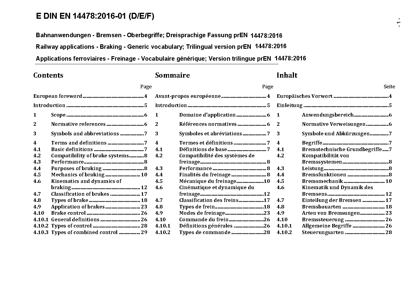 This European Standard provides terms and definitions for common use for brakes and braking in rolling stock.