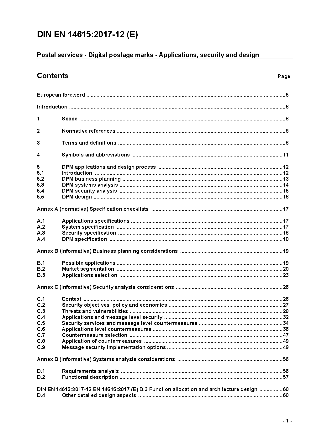 The transition from letterpress to digital printing provides the opportunity for a more effective way to communicate information on postal items. Current Postmarks include information such as postage value, date of posting and equipment identification, but this information is not readily machine readable. The emergence of digital printing and image processing technologies offers the opportunity to encode critical data in the form of digital postage marks (DPMs) which are more suitable for computer data capture. However, the adoption of these technologies requires careful study, both to maximise the benefits from their introduction and because digital printing technology might bring with it the need for different security measures than those commonly used in association with letterpress printing. The document identifies a variety of factors which need to be considered in the DPM design process. It has three main purposes. It is intended to serve as: a) a standard process: for the design of applications using digital postage marks; b) a guide: to help in structuring local standards for digital postage marks; c) a cross reference: to point to other standards and documents related to DPM applications. It is stressed that the factors identified are intended to be representative and do not constitute an exhaustive list. Similarly, the document provides many examples of possible architectures and design solutions to the issues which are raised. These are non-normative. They are given for illustrative purposes only and there certainly exists a wide range of other possibilities which are not described. It is not intended to suggest that any one architecture or design or technical solution described is in any way required or in any way superior to any other, whether described herein or not.