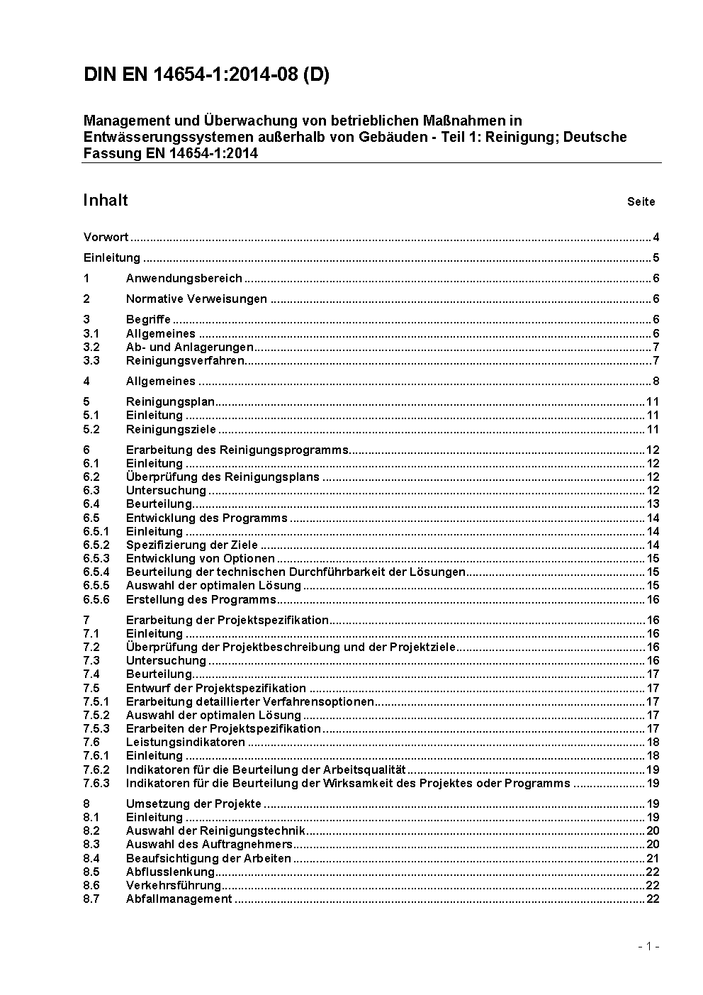 Management and control of cleaning operations in drains and sewers - Part 1: Sewer cleaning; German version EN 14654-1:2005