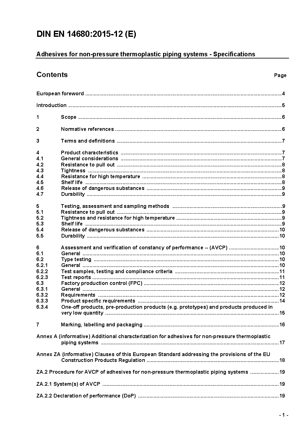 Adhesives for non-pressure thermoplastic piping systems - Specifications; German version prEN 14680:2013