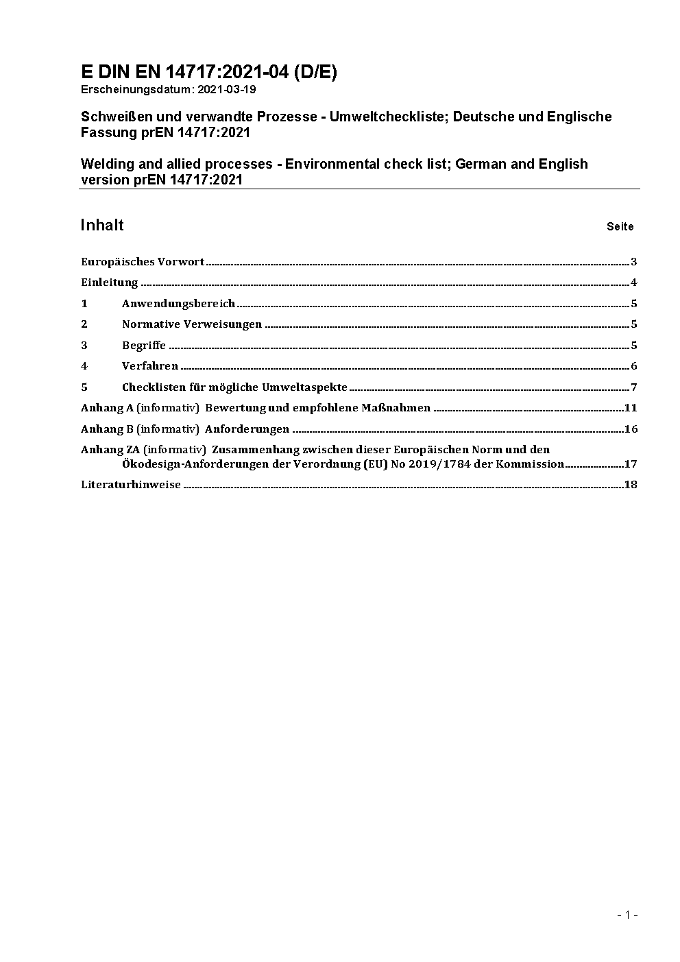 Welding and allied processes - Environmental check list; German version EN 14717:2005