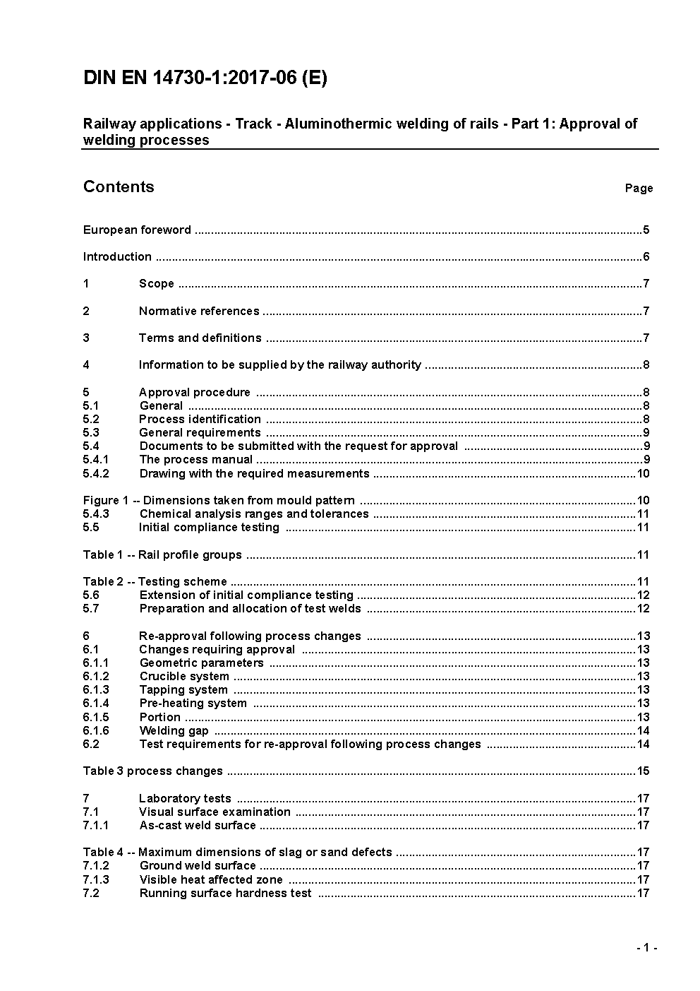 Railway applications - Track - Aluminothermic welding of rails - Part 1: Approval of welding processes; German version EN 14730-1:2017