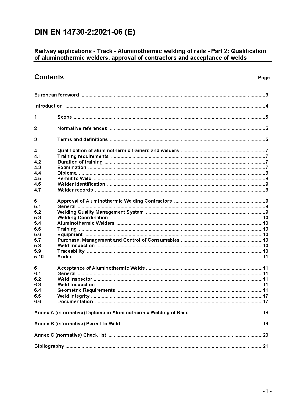 Railway applications - Track - Aluminothermic welding of rails - Part 2: Qualification of aluminothermic welders, approval of contractors and acceptance of welds; German version EN 14730-2:2006