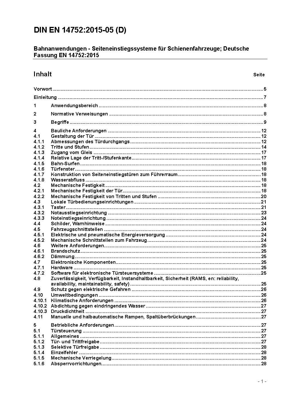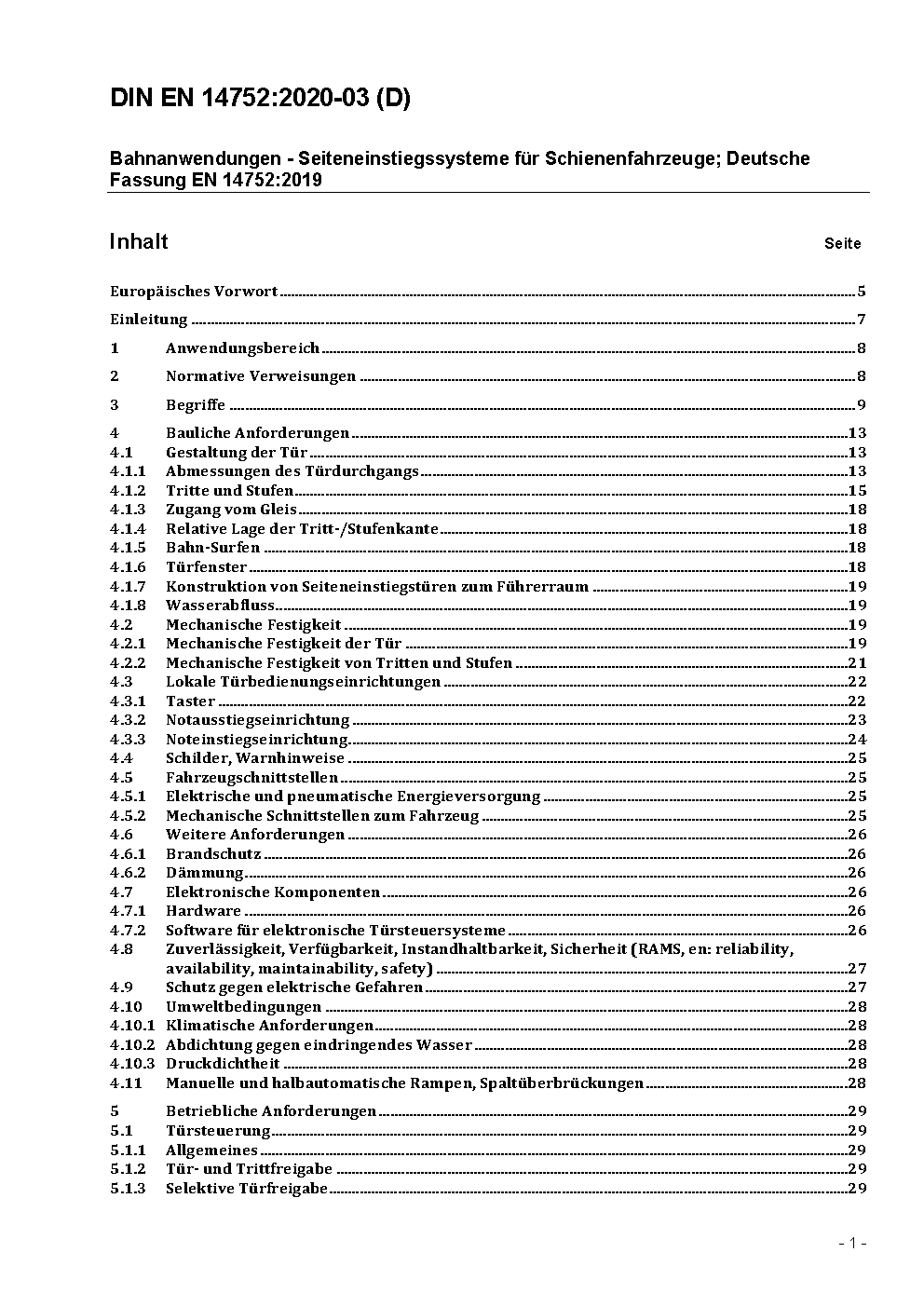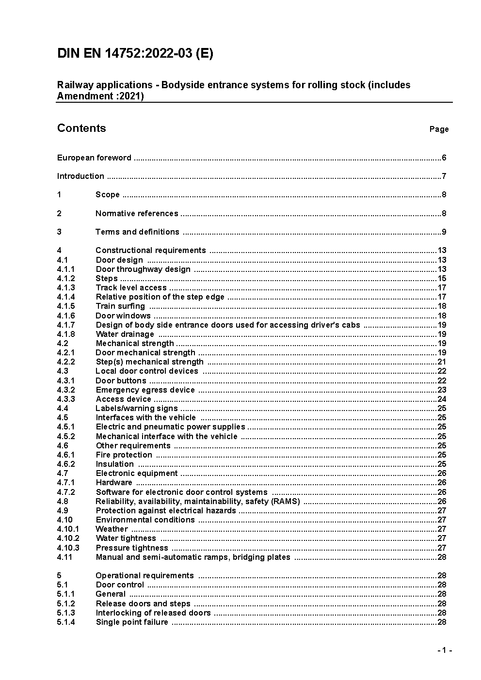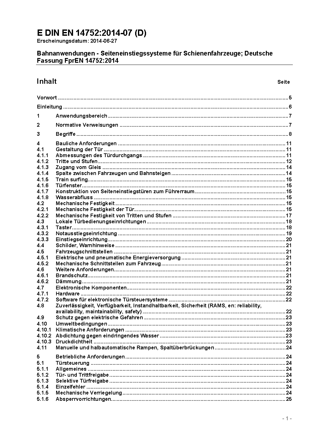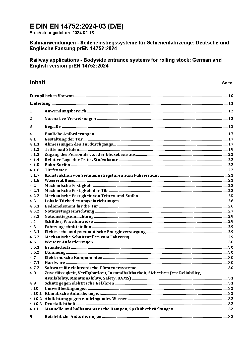 Railway applications - Bodyside entrance systems for rolling stock; German and English version prEN 14752:2017