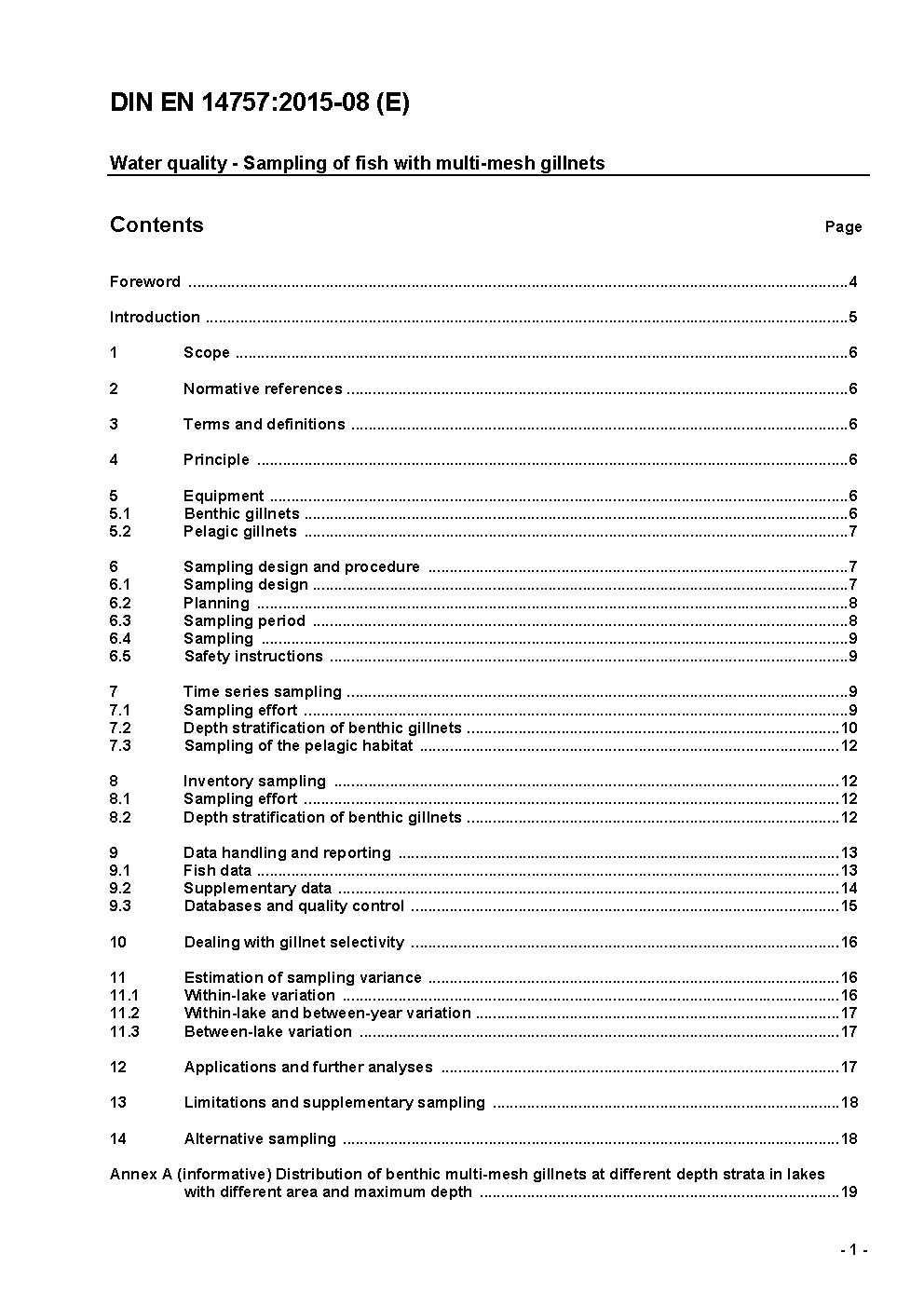 Water quality - Sampling of fish with gill nets; German version prEN 14757:2003