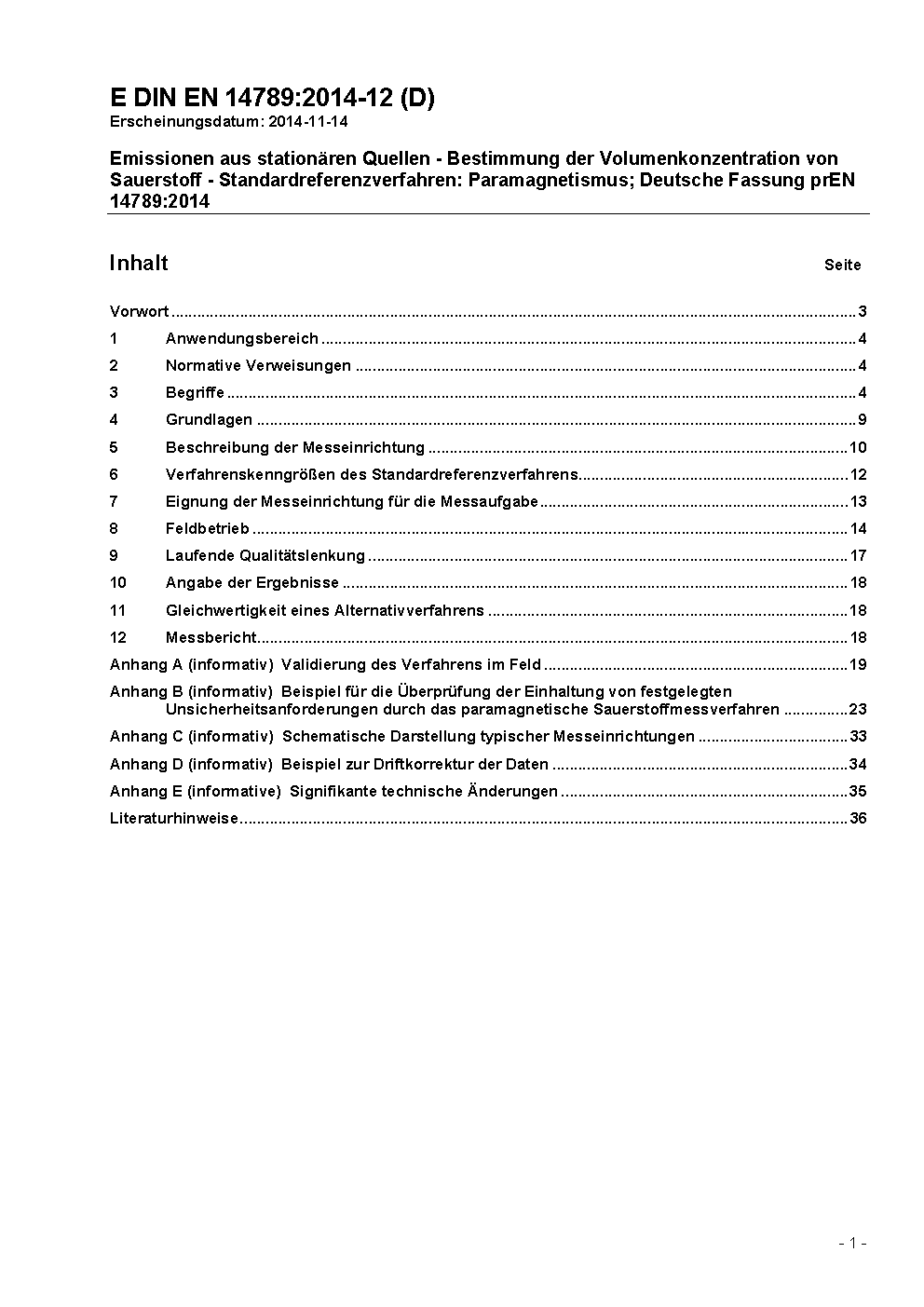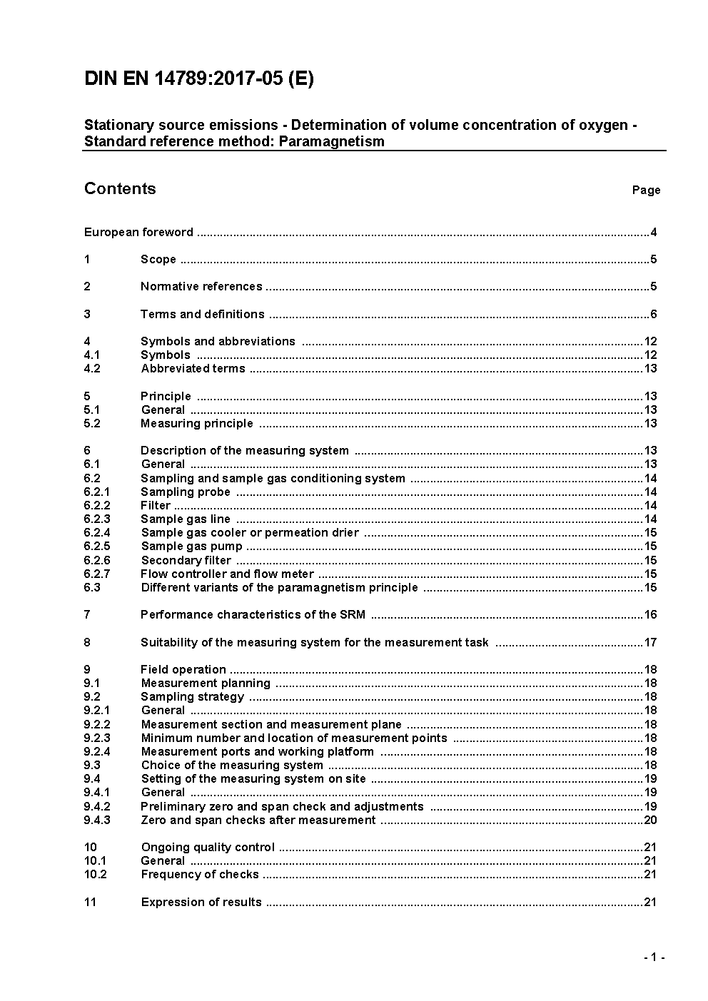 Stationary source emissions - Determination of volume concentration of oxygen (O<(Index)2>) - Reference method - Paramagnetism; German version EN 14789:2005