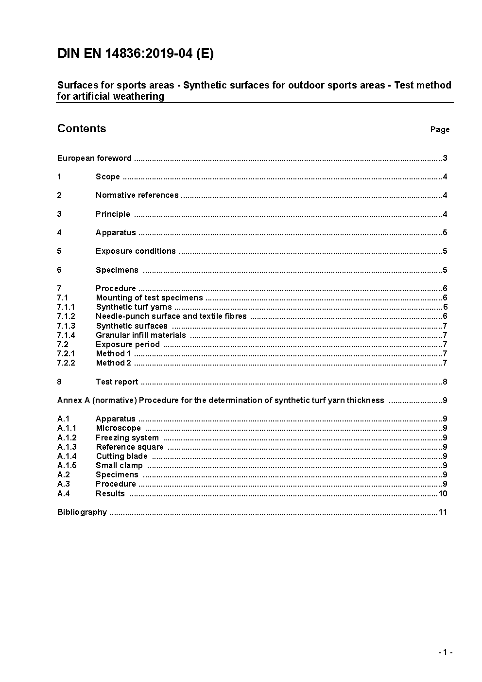 This European Standard specifies a method for the exposure of synthetic surfaces for outdoor sports areas to artificial weathering in order that the resulting changes in properties may be determined as detailed in the relevant product specification.