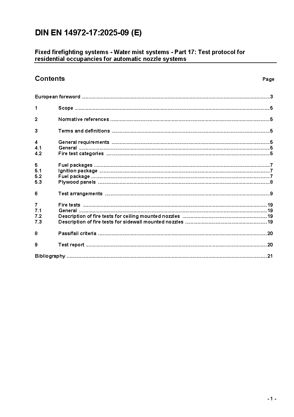 Fixed firefighting systems - Water mist systems - Part 17: Test protocol for residential occupancies for automatic nozzle systems; German and English version prEN 14972-17:2022