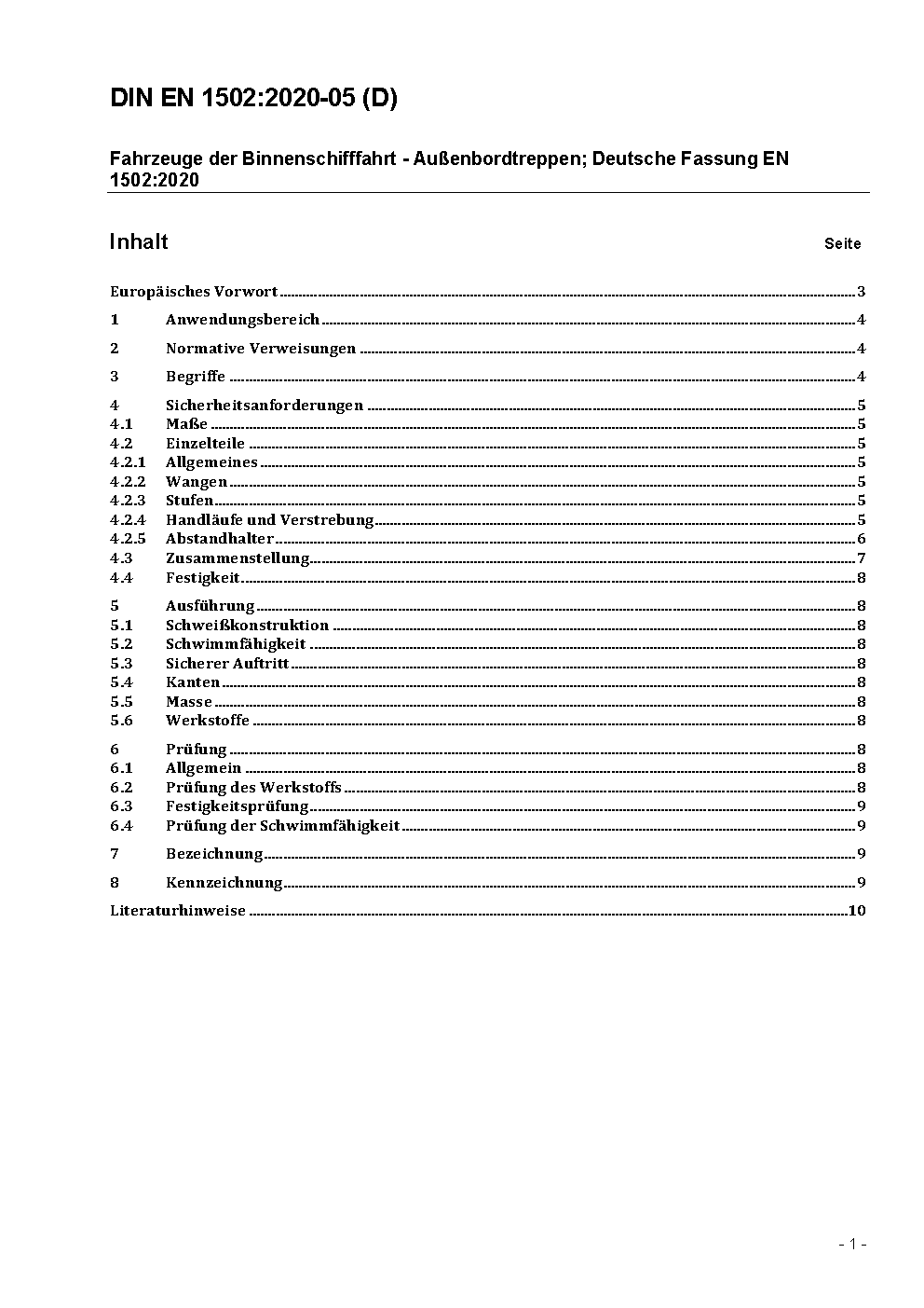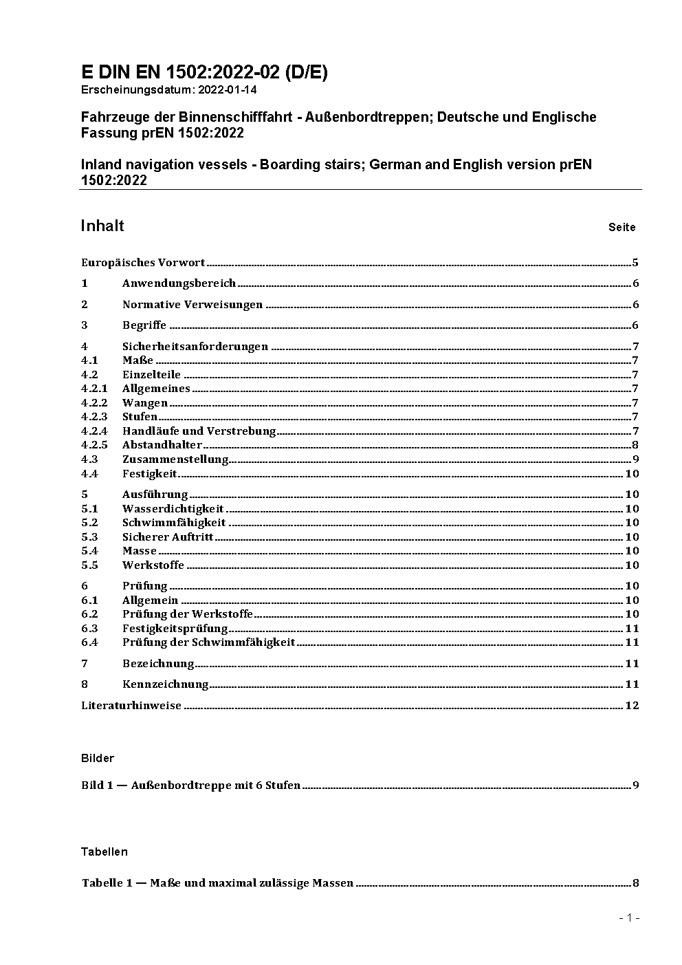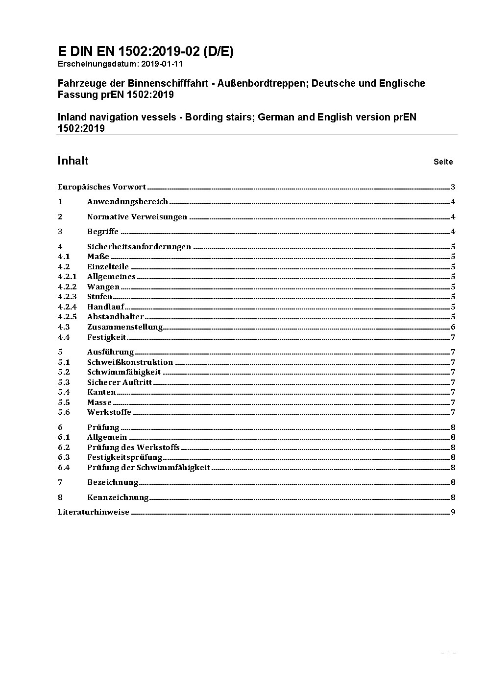 The document specifies design, dimensions, strength requirements and test conditions which have to be observed for safety reasons. Outboard ladders provide access to ship's boats, transfer ashore or to vessels with lower decks.