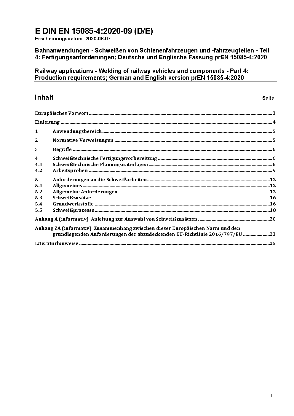 Railway applications - Welding of railway vehicles and components - Part 4: Production requirements; German version EN 15085-4:2007