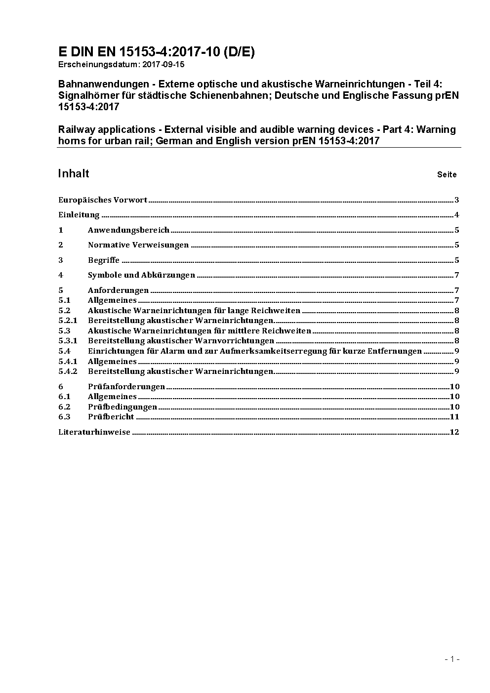 Bahnanwendungen - Äußere optische und akustische Warneinrichtungen - Teil 4: Signalhörner für städtische Schienenbahnen; Deutsche Fassung EN 15153-4:2020