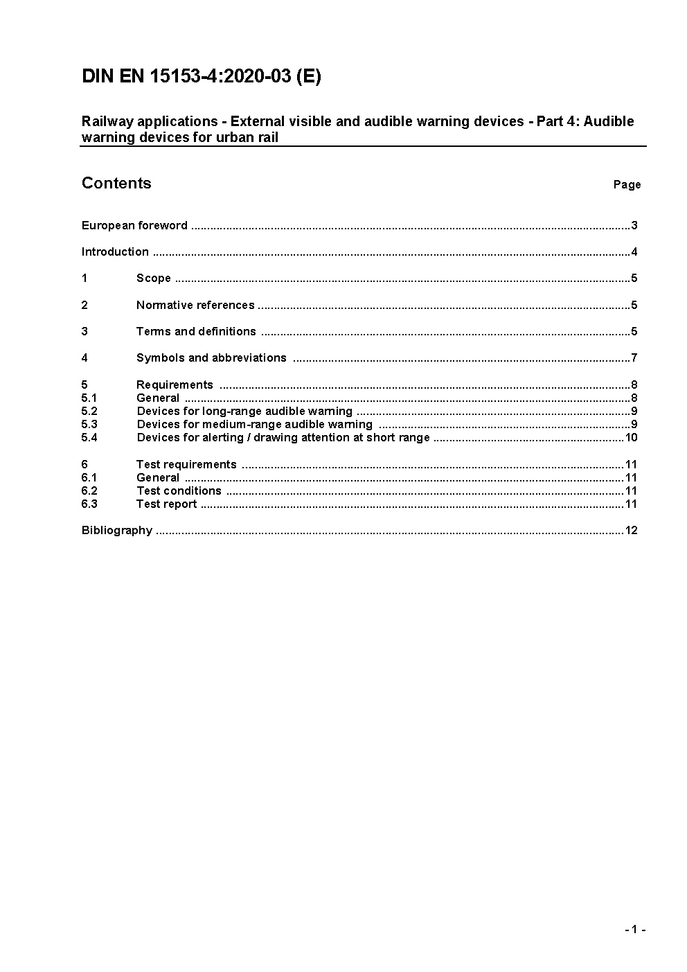 Railway applications - External visible and audible warning devices - Part 4: Audible warning devices for urban rail; German version EN 15153-4:2020