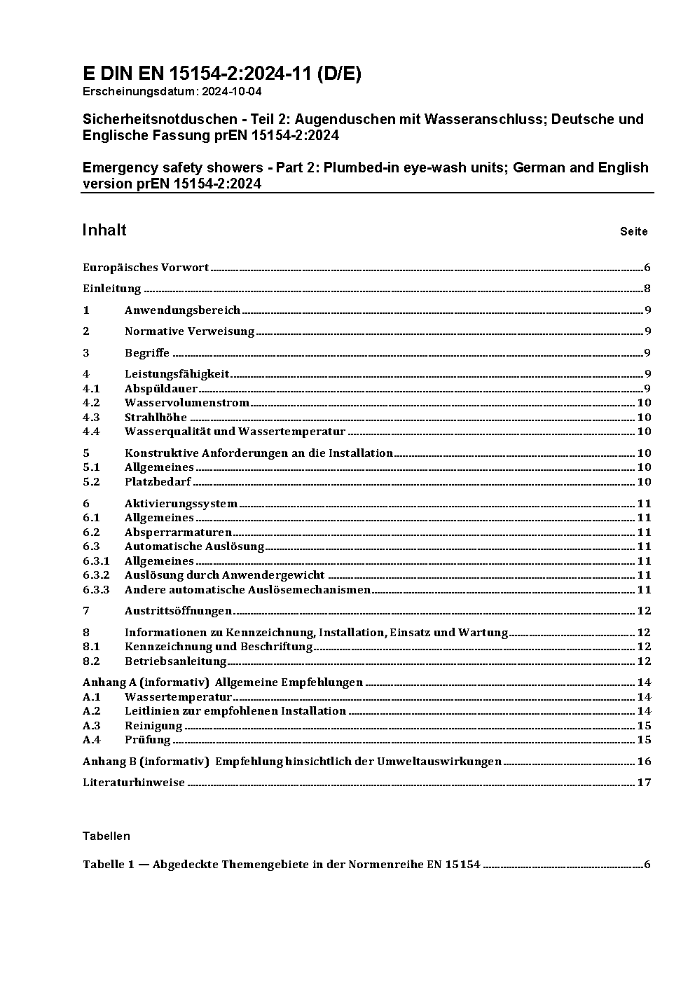 Sicherheitsnotduschen - Teil 2: Augenduschen mit Wasseranschluss; Deutsche Fassung EN 15154-2:2006