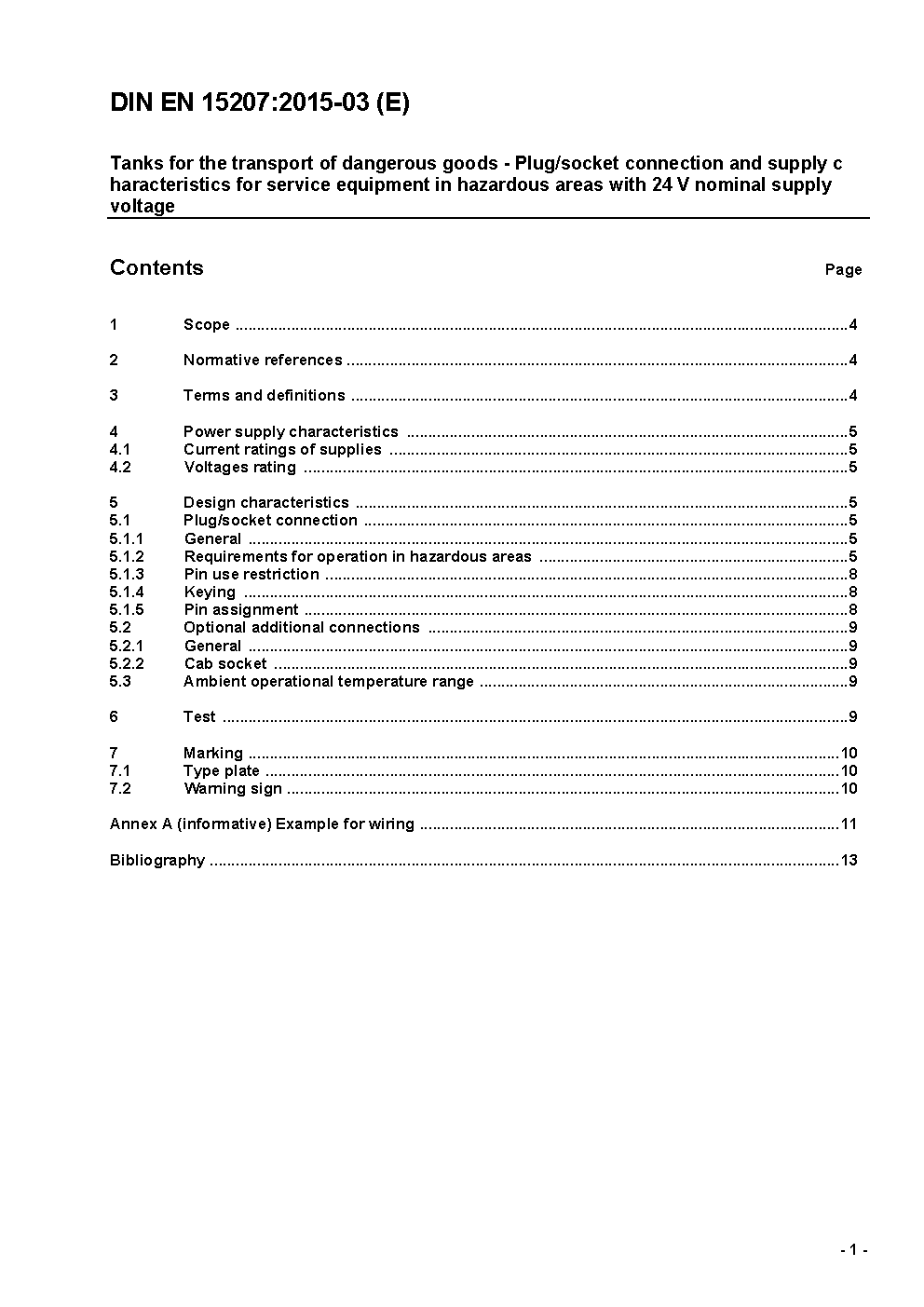 Tanks for transport of dangerous goods - Plug/socket connection and supply characteristics for service equipment in hazardous areas with 24 V nominal supply voltage; German version EN 15207:2006