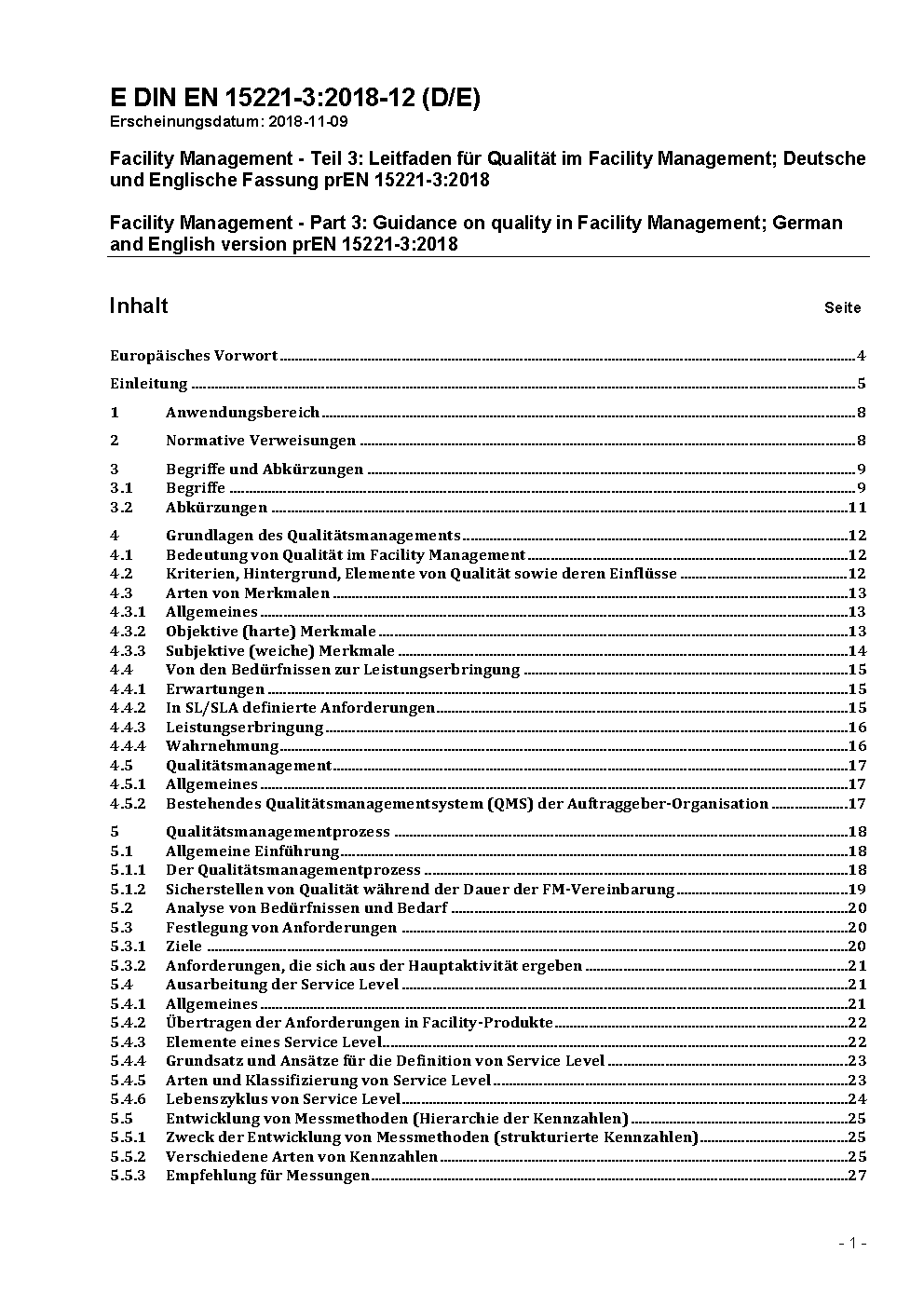 Facility Management - Part 3: Guidance on quality in Facility Management; German and English version prEN 15221-3:2018