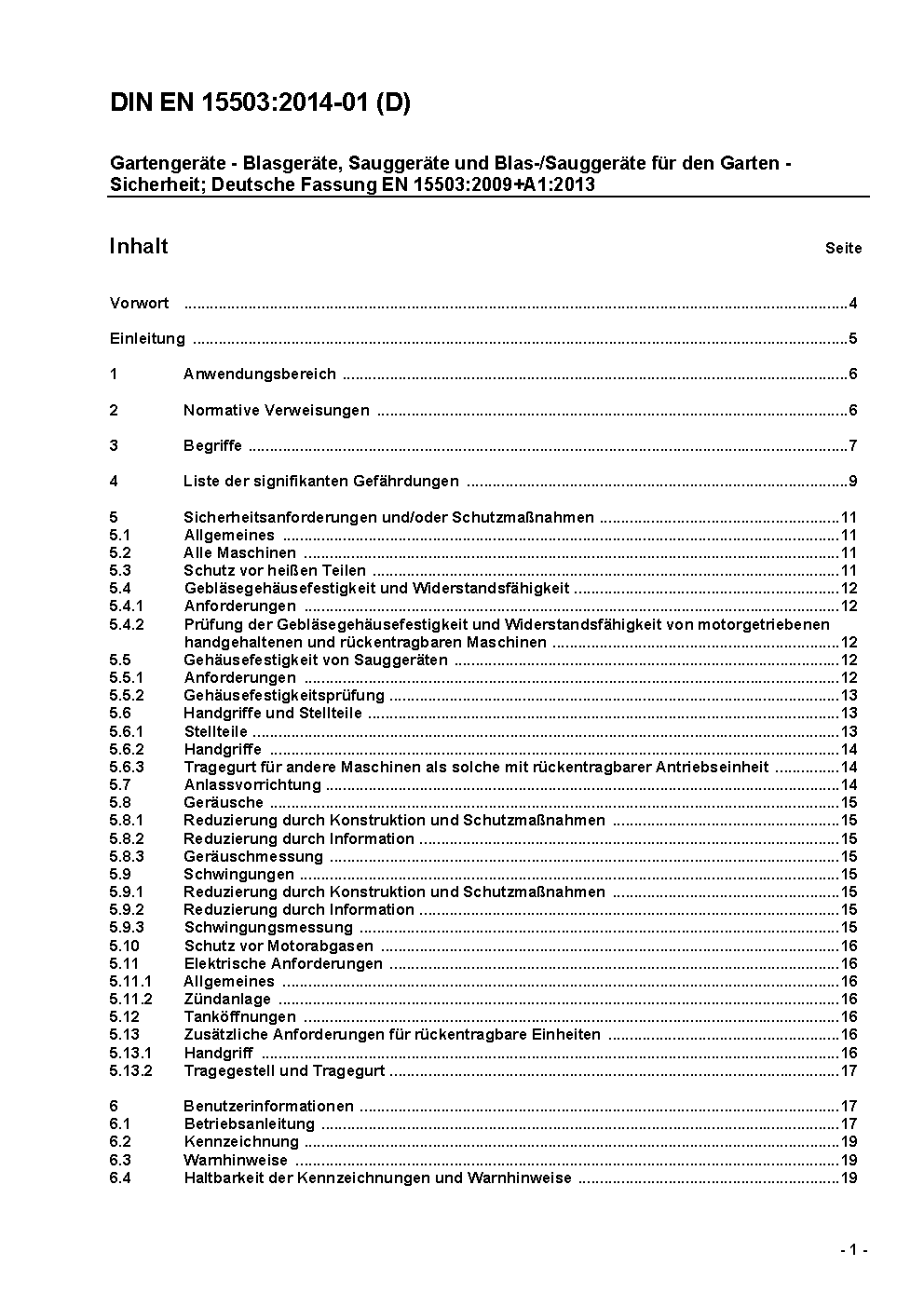 Garden equipment - Garden blowers, vacuums and blowers/vacuums - Safety; German version EN 15503:2009+A1:2013