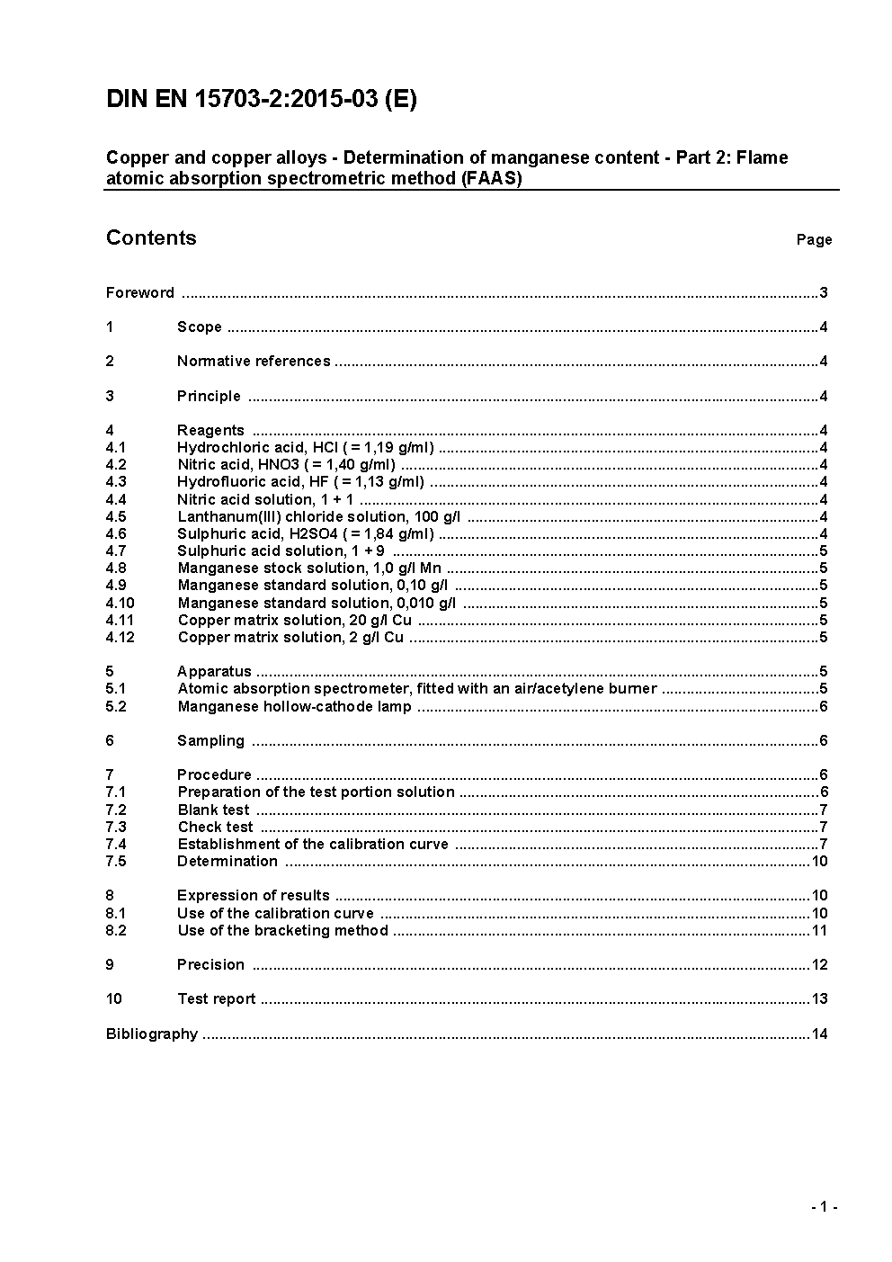 Copper and copper alloys - Determination of manganese content - Part 2: Flame atomic absorption spectrometric method (FAAS); German version prEN 15703-2:2013