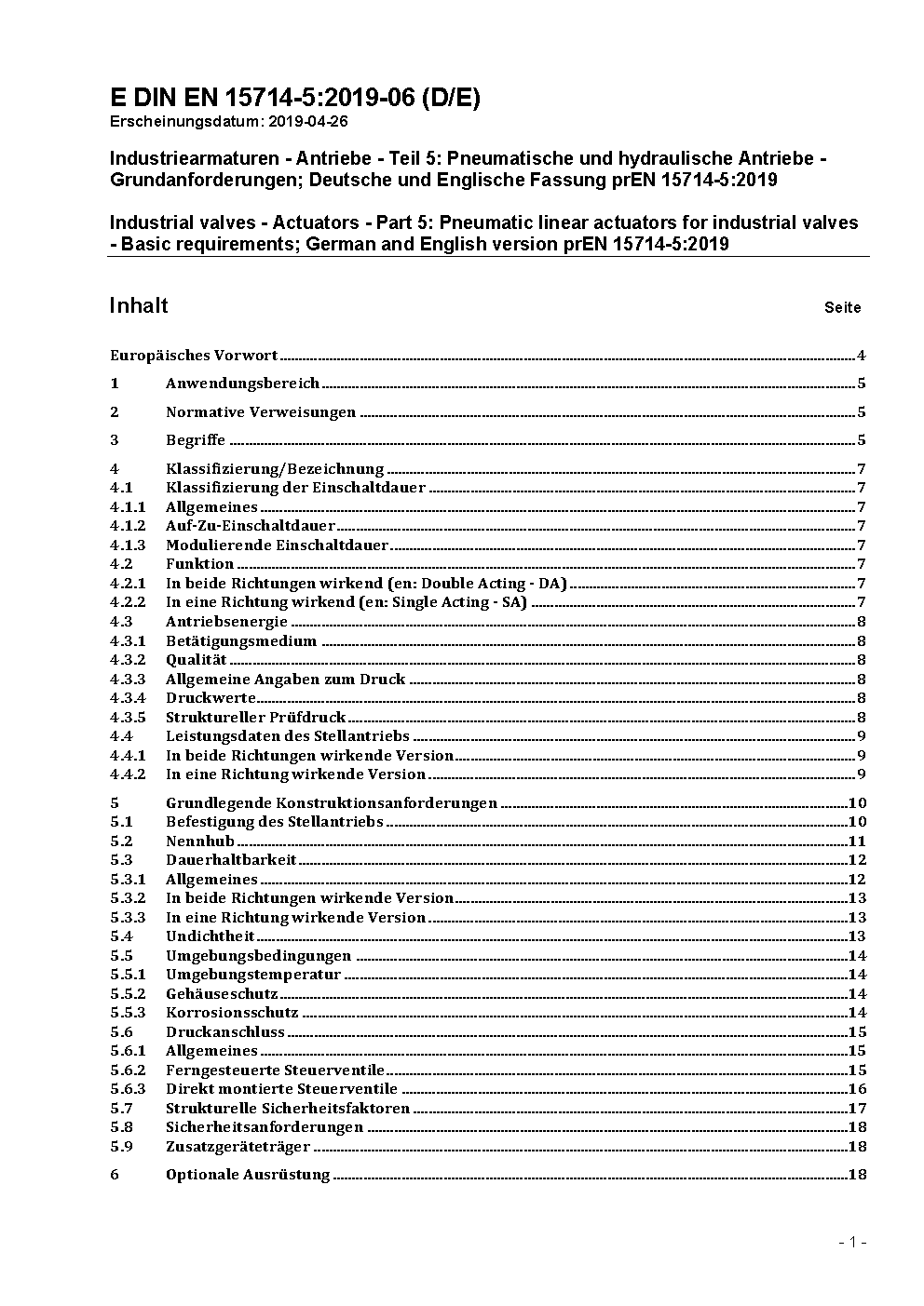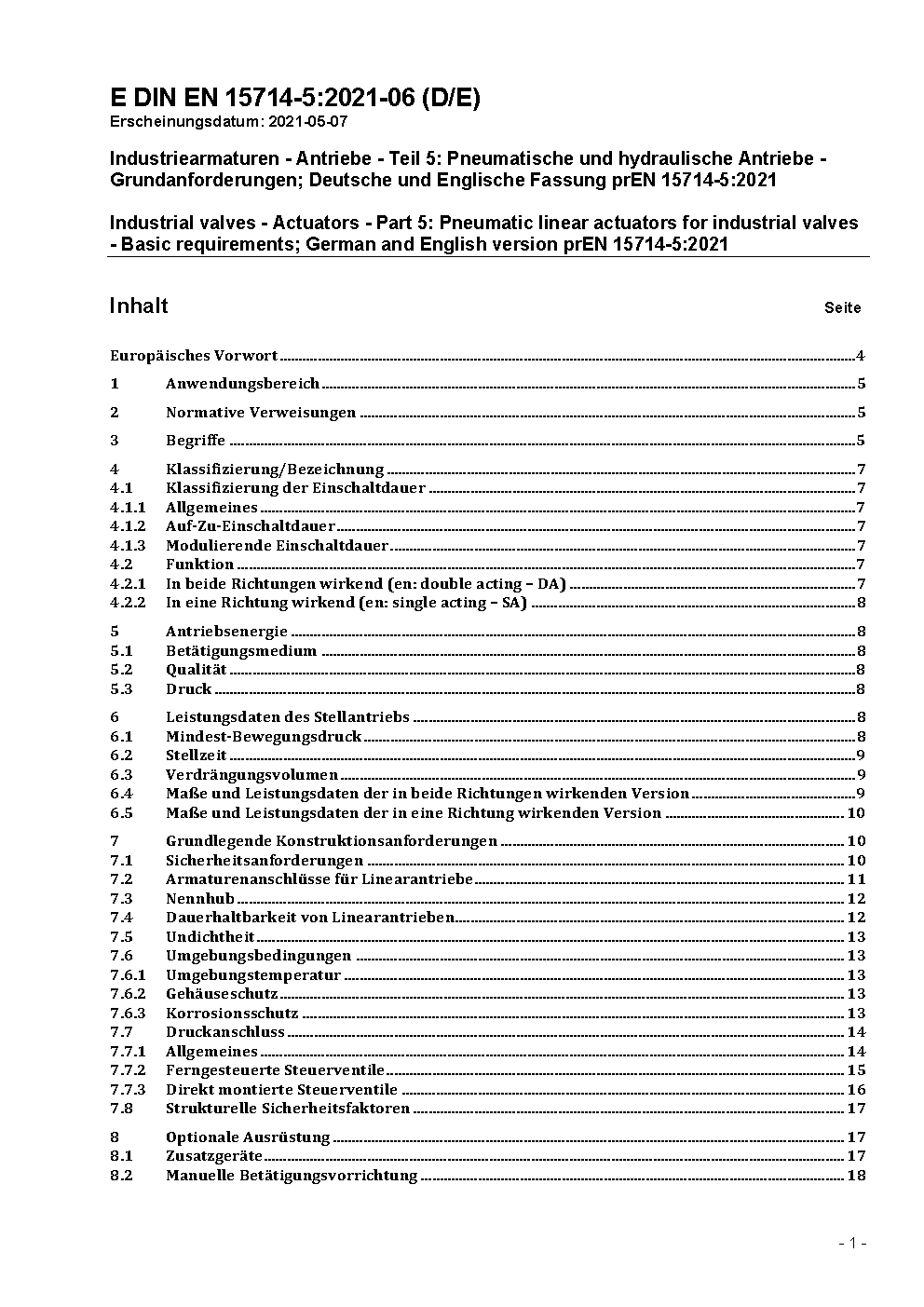 Industriearmaturen - Antriebe - Teil 5: Pneumatische Antriebe - Grundanforderungen; Deutsche Fassung EN 15714-5:2022