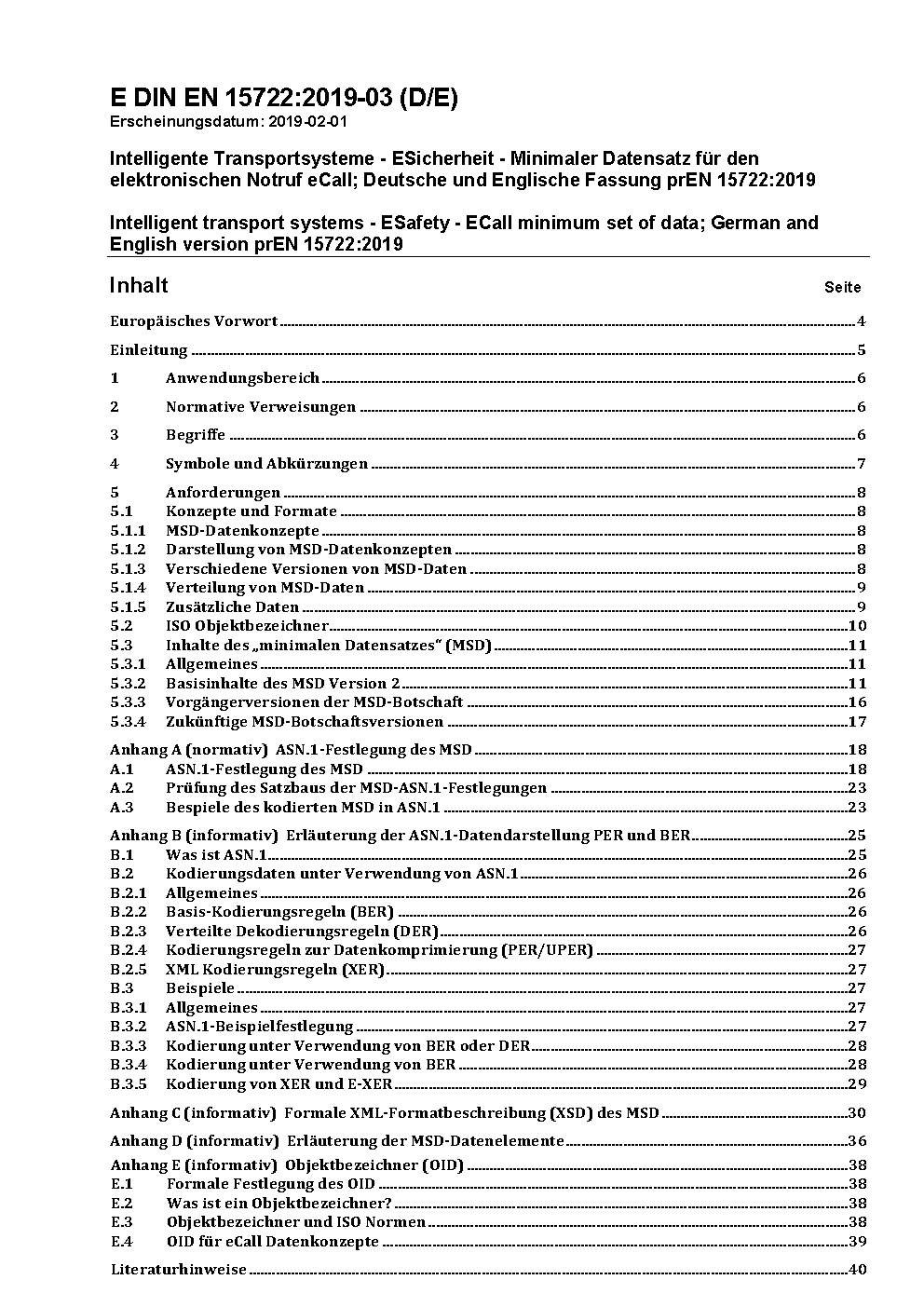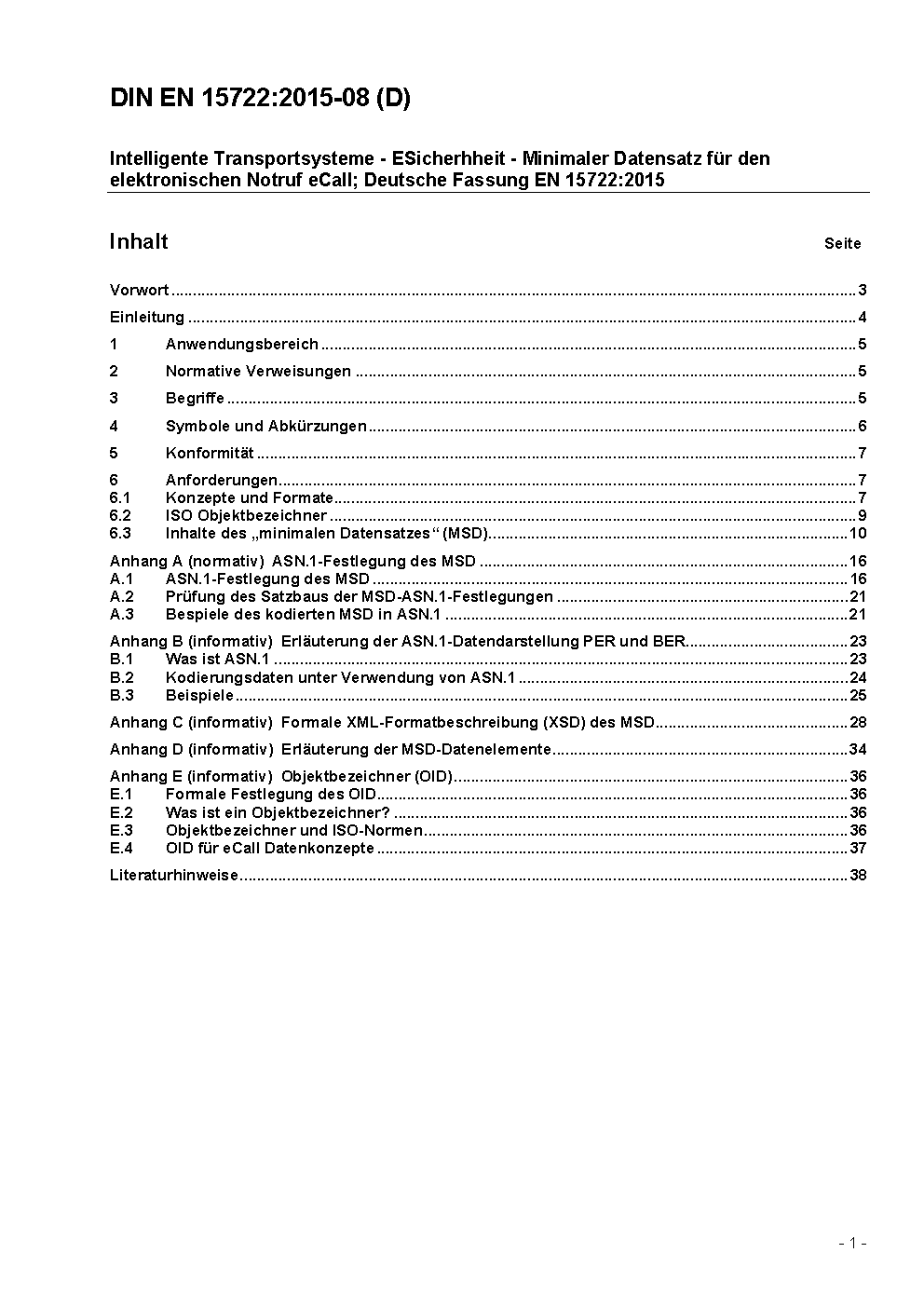 Intelligent transport systems - eSafety - ECall minimum set of data; German version FprEN 15722:2014