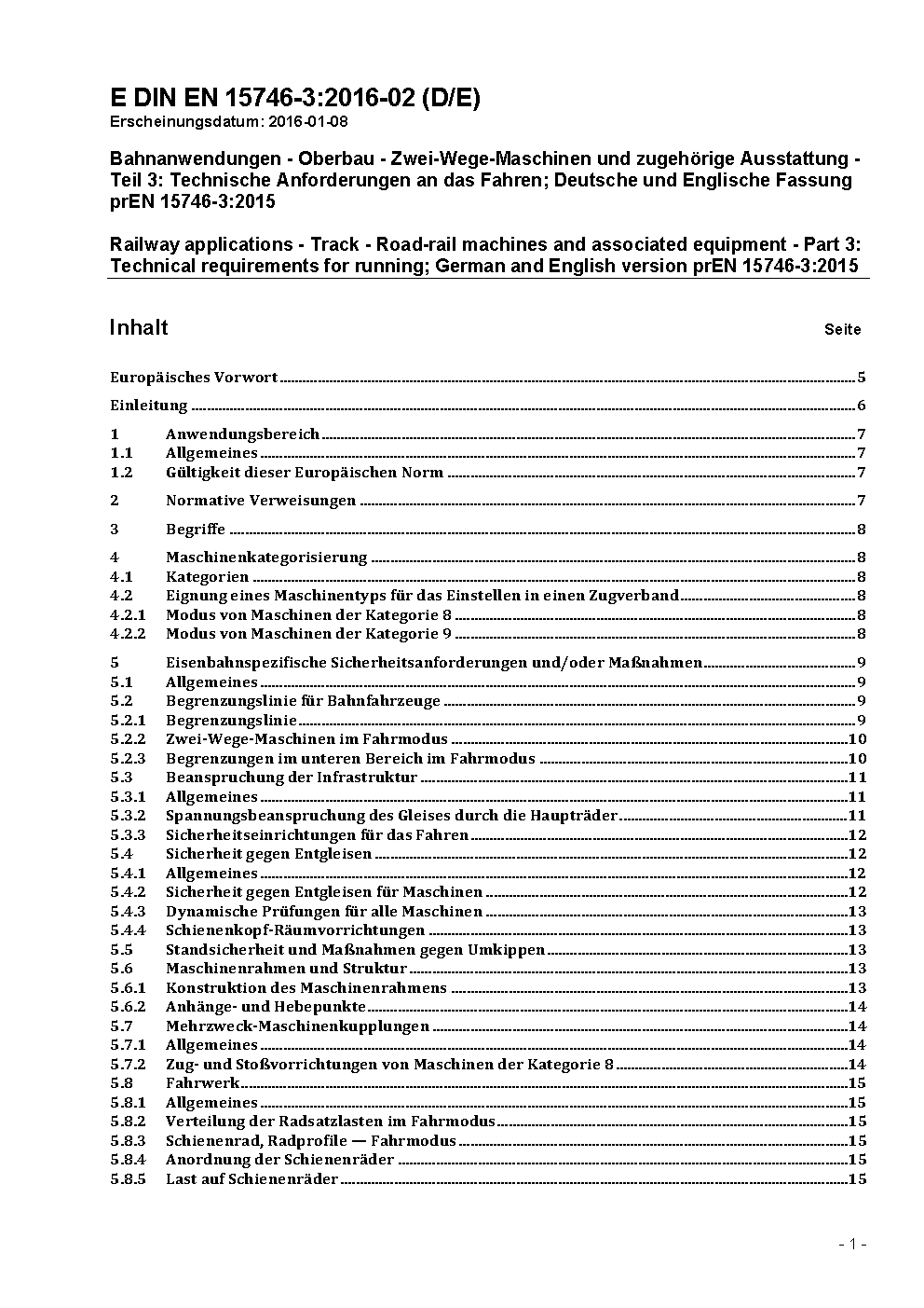 Railway applications - Track - Road-rail machines and associated equipment - Part 3: Technical requirements for running; German and English version prEN 15746-3:2015